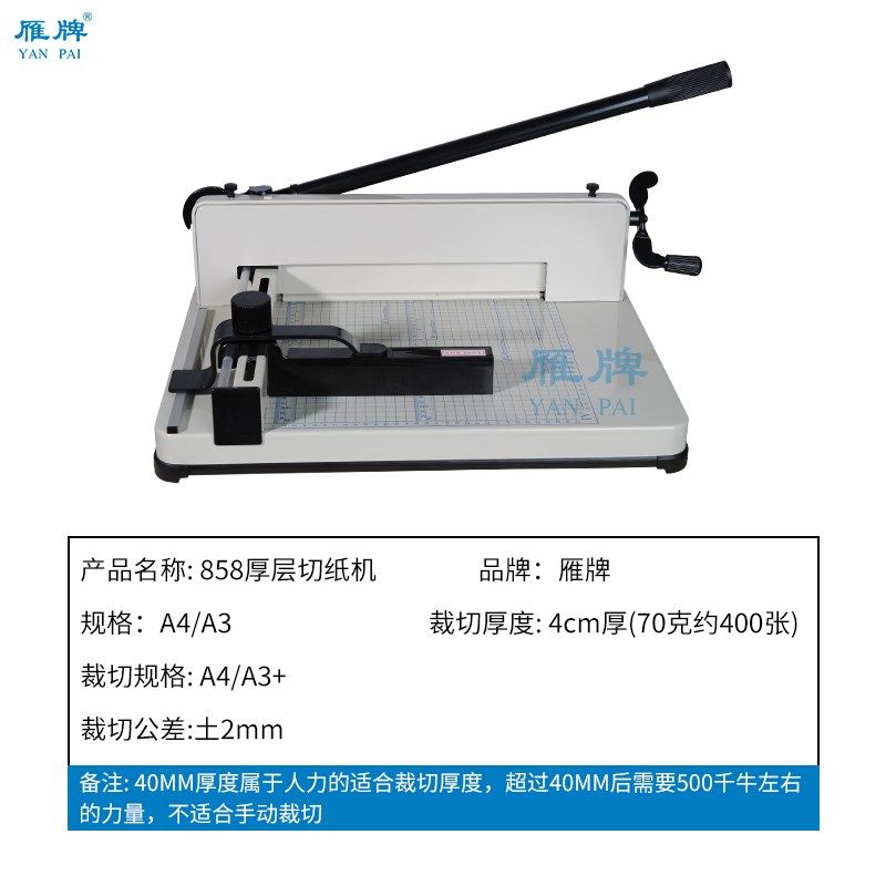 📚 雁牌A3/A4大型重型切纸机厚层切纸刀不干胶手动裁切机压痕机切割