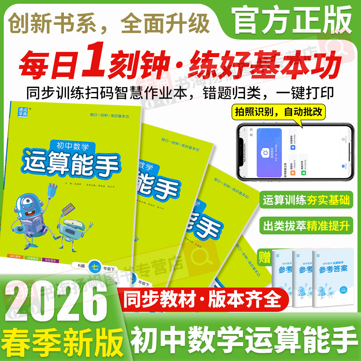 📚 2026运算能手七下八下初中计算能手七九八年级上册下册数学人教版北师大华师版通城学典初中生同步练习册 初一二三训练课时作业本