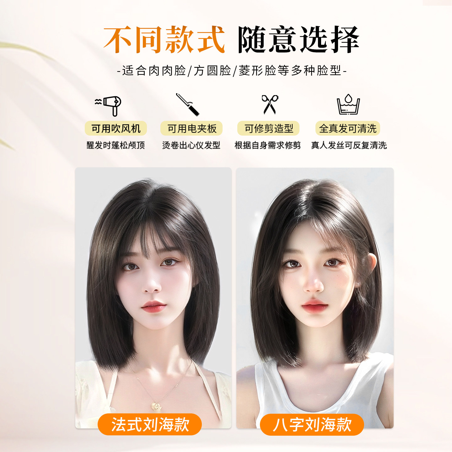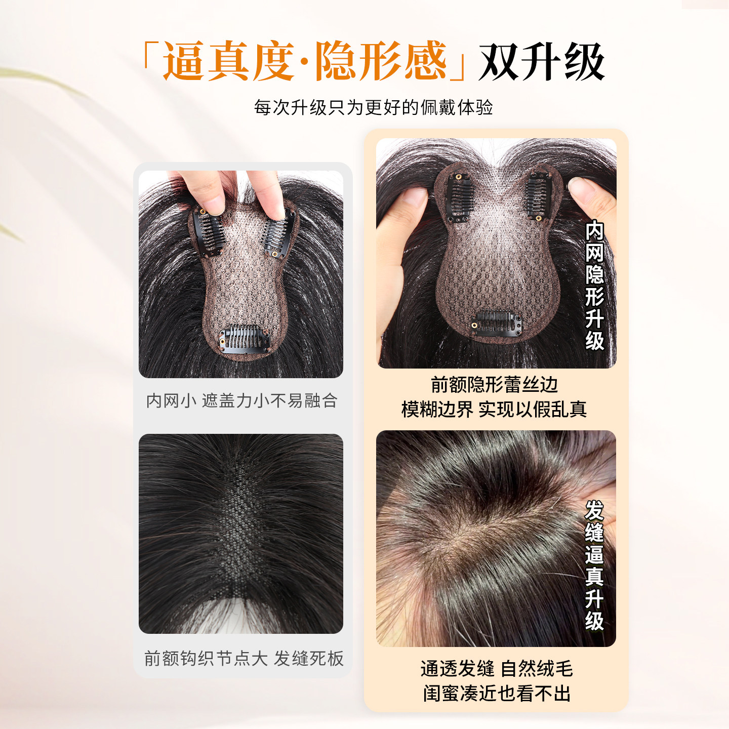 📚 佳丽仟丝假发女片头顶真发蓬松高颅顶遮白发自然前额无痕刘海假发