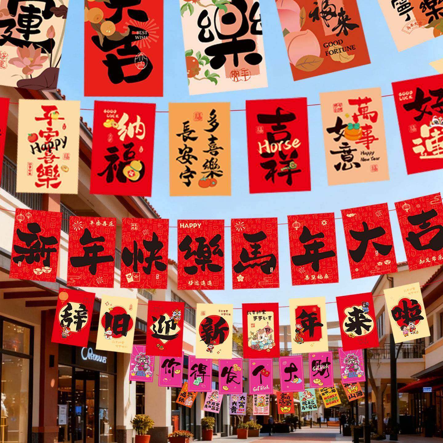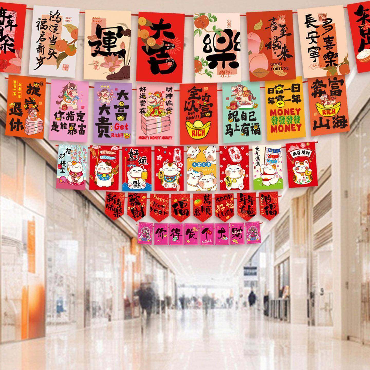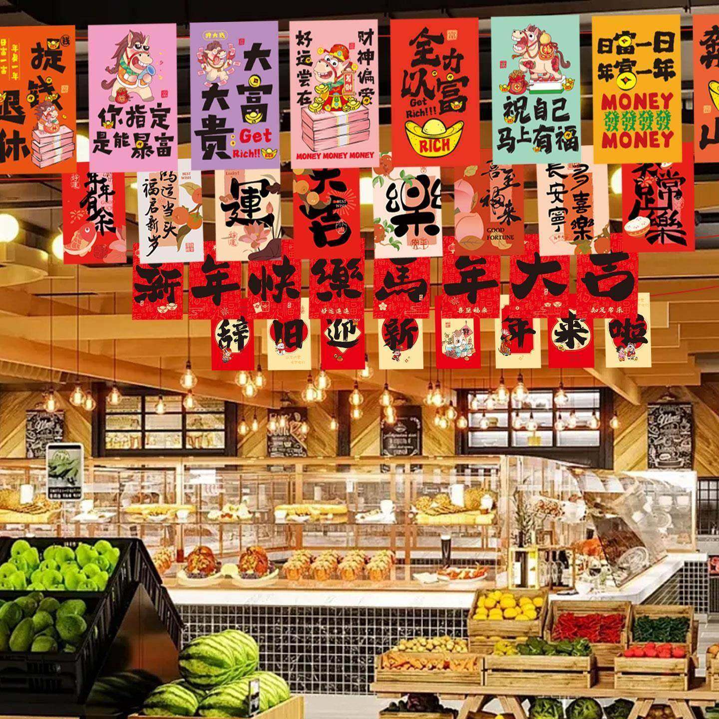 📚 元旦节装饰旗帜拉旗商业步行街商场餐厅火锅店新年氛围装扮挂饰