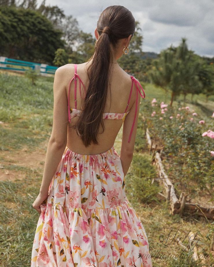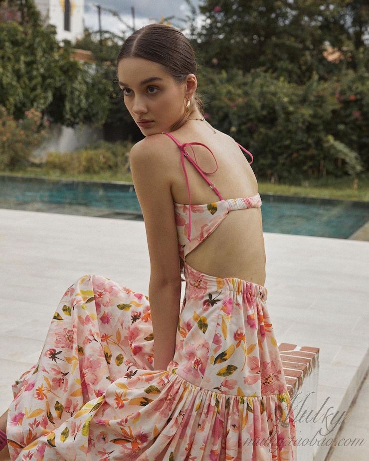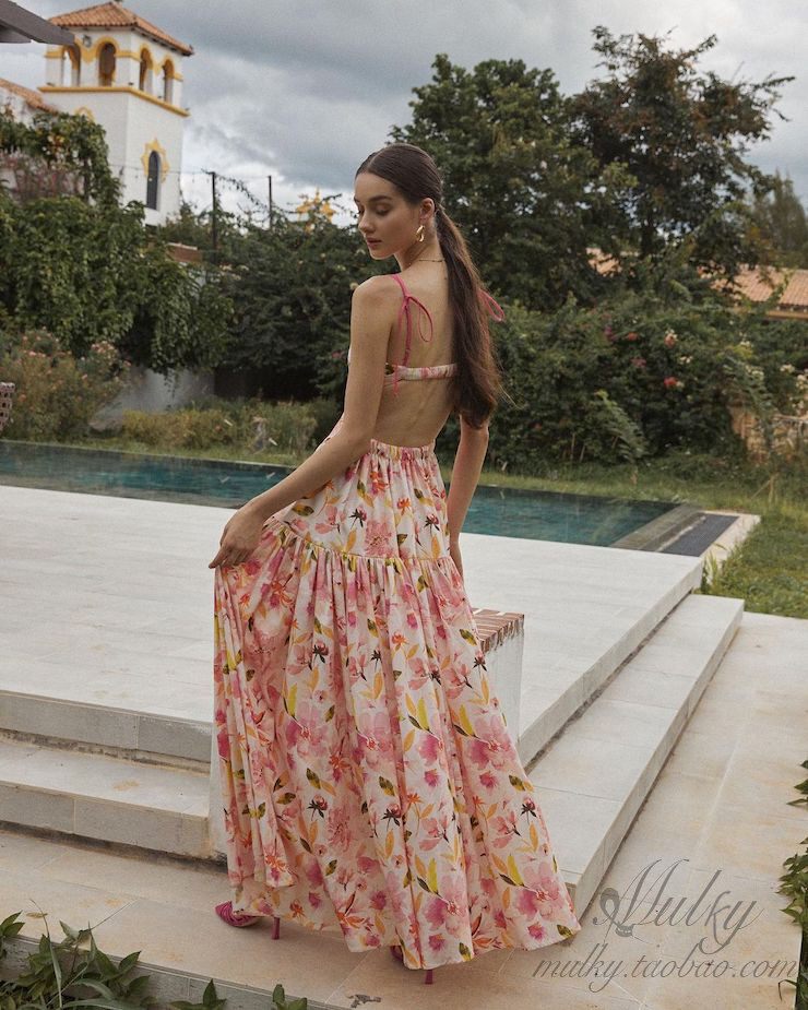 📚 【泰国代购】设计师设计 Pleased 花朵露背度假吊带连衣裙长裙
