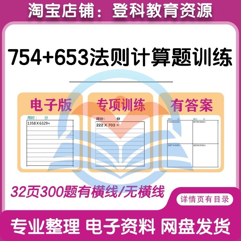 📚 子贤老师754法则653计算训练三四位数小学数学乘法竖式电子版资料