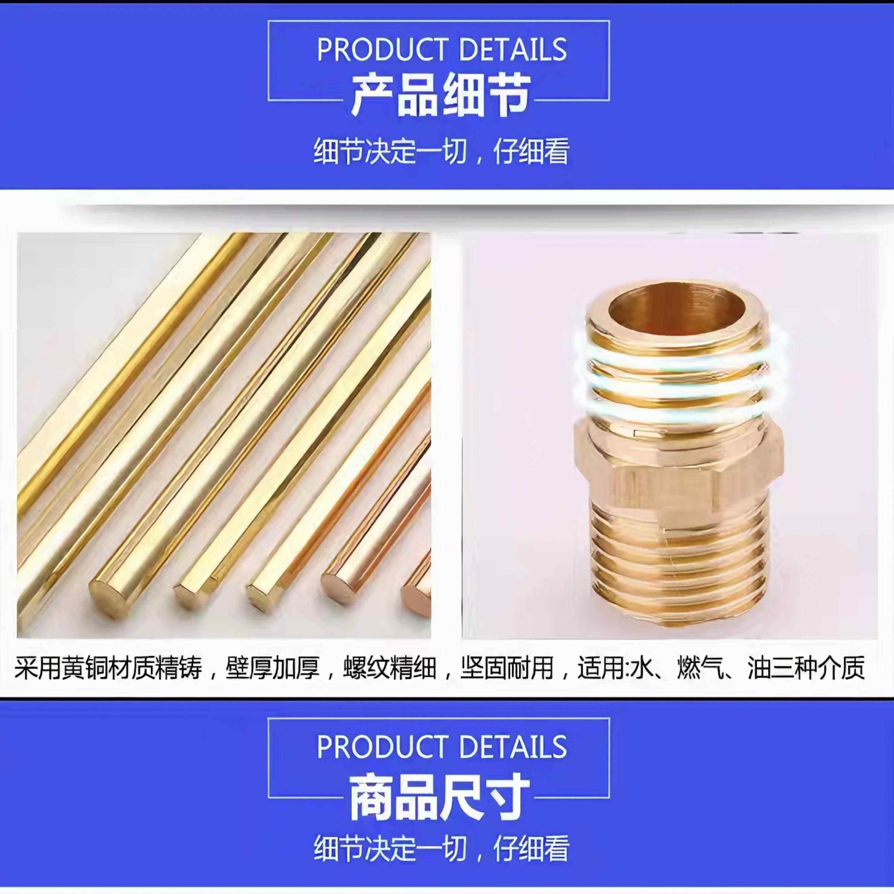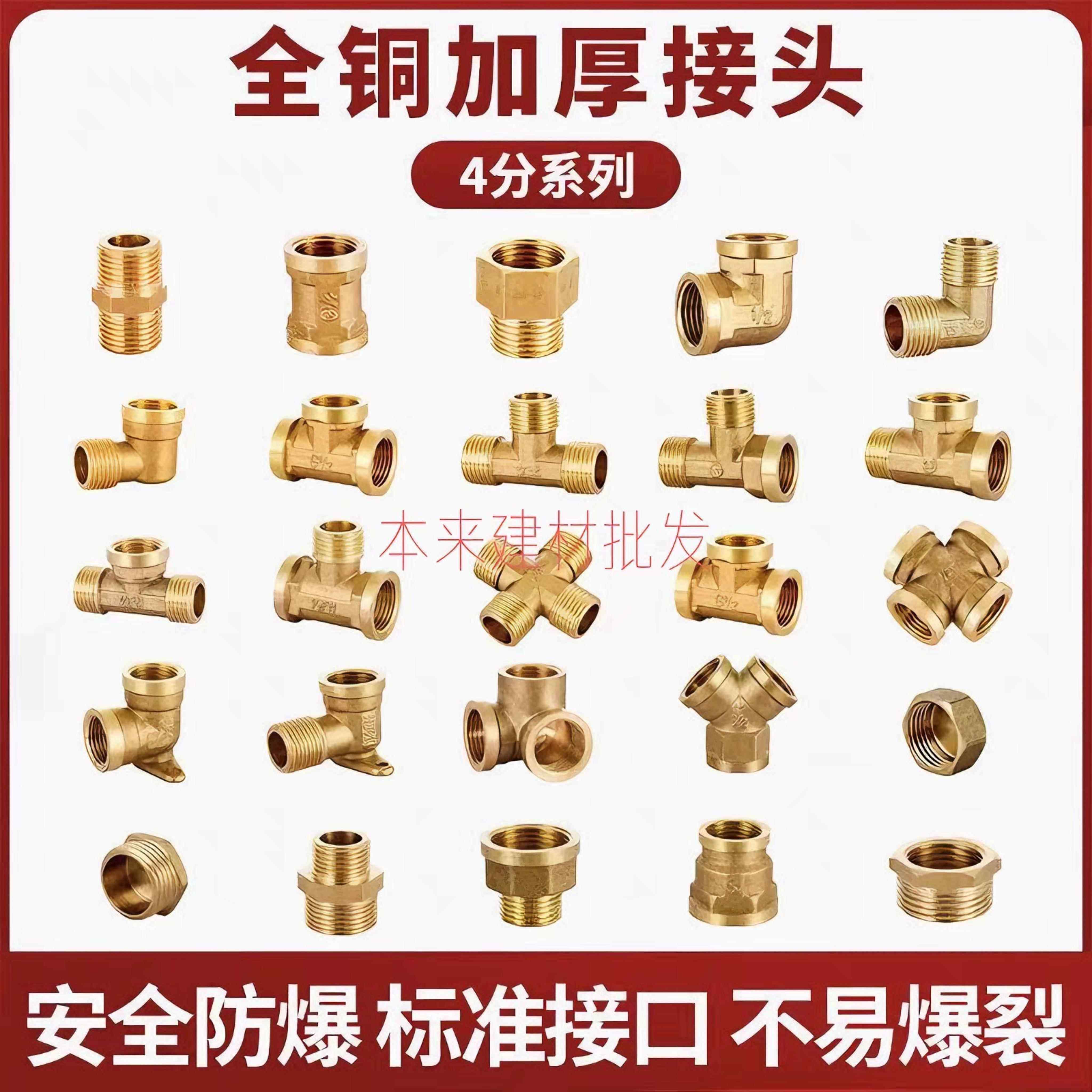 📚 铜4分内外丝接头内丝直接双公螺丝三通6分转4分变径四分水管水暖