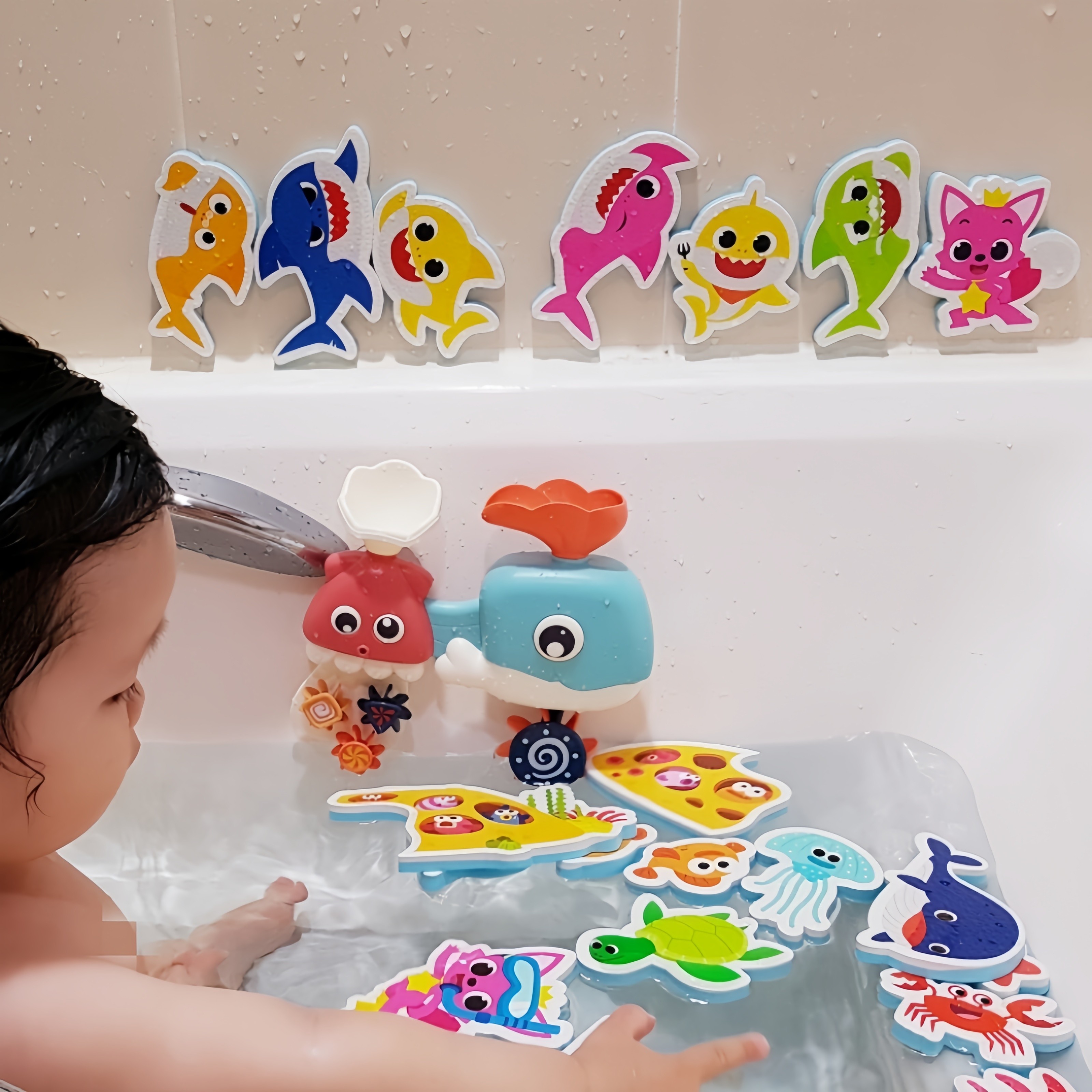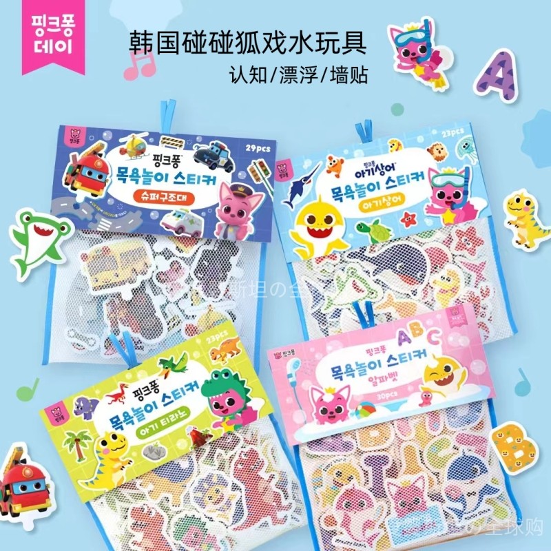 📚 碰碰狐鲨鱼宝宝洗澡玩具儿童戏水认知浴室婴儿泡沫墙贴水上漂浮