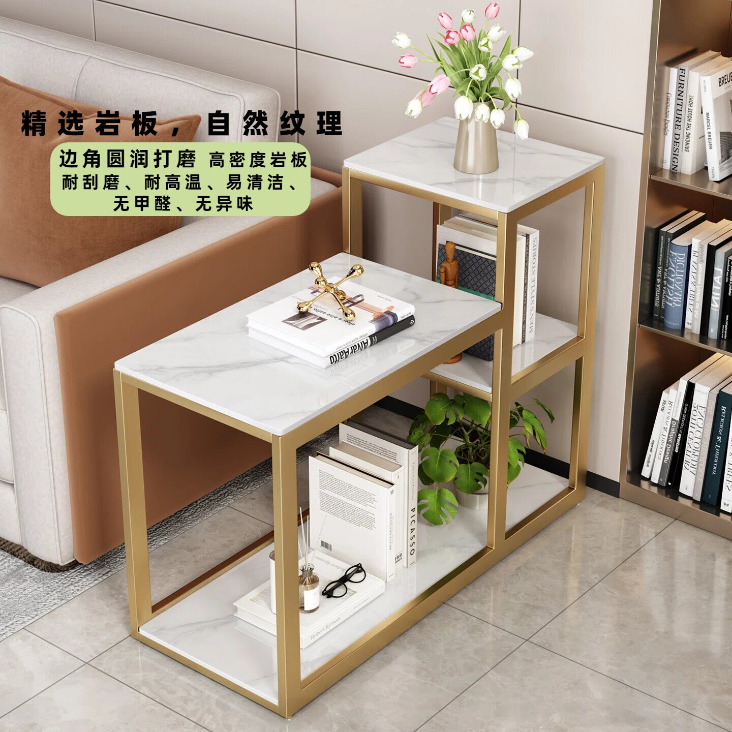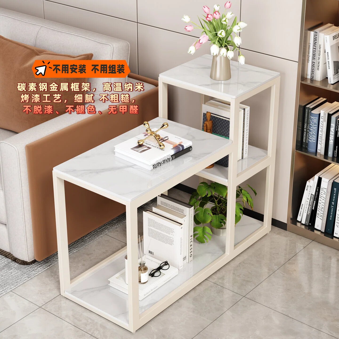 📚 免组装岩板沙发边几小米鱼缸置物多层收纳架客厅边柜家用极窄角几