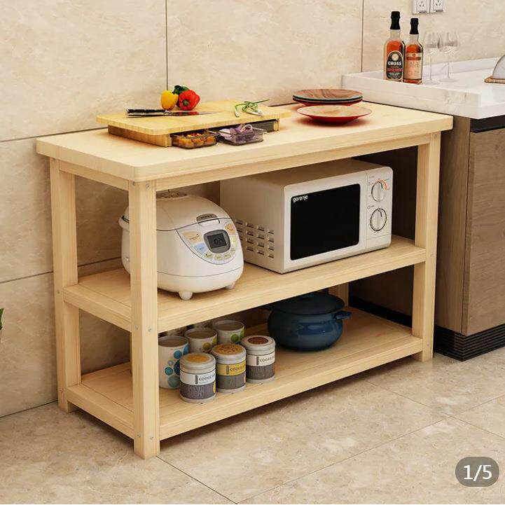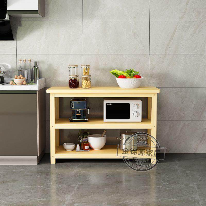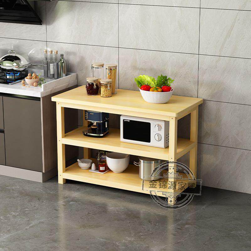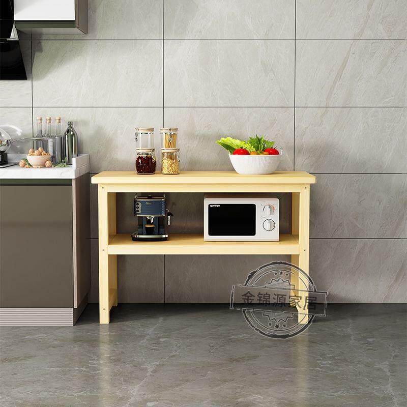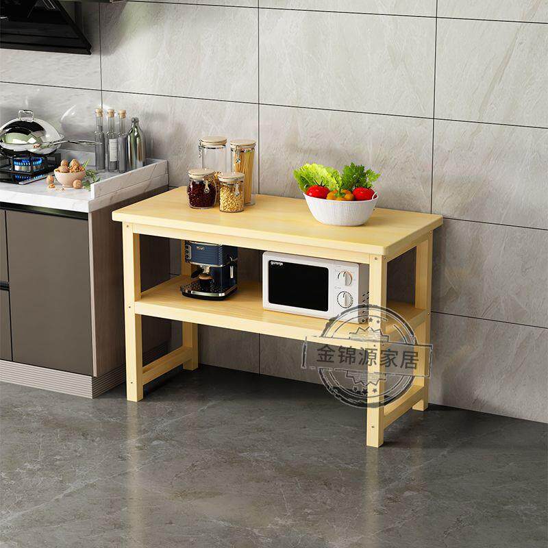 📚 实木储物架厨房置物架落地双层切菜桌料理台简易长条桌微波架定