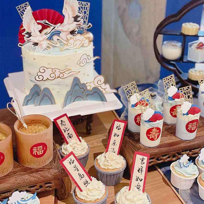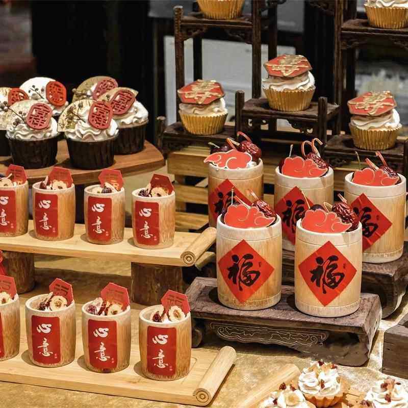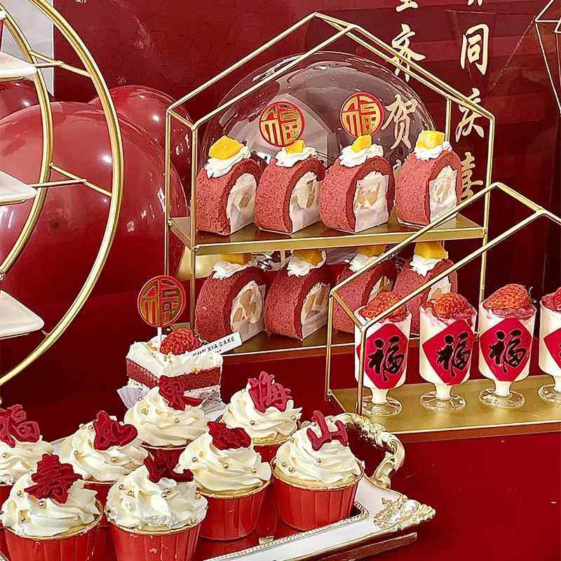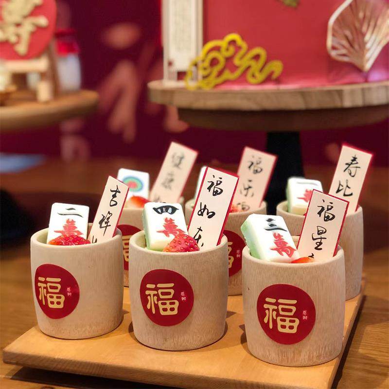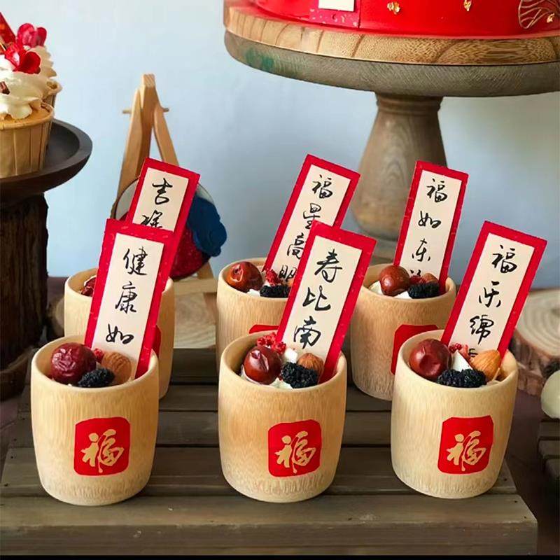 📚 祝寿中式红色甜品台装饰过寿寿宴插件插牌竹筒杯福字贴纸福如东海