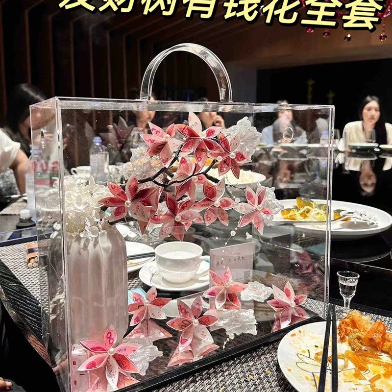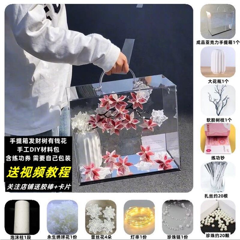 📚 发财树有钱花diy材料包现金花束压克力手提摩天轮帆船透明礼盒豪