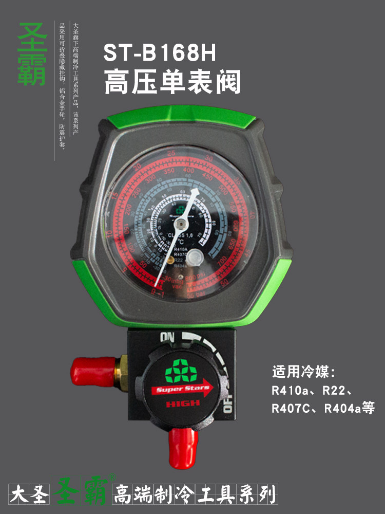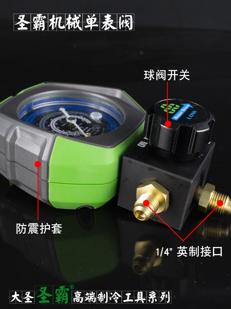 📚 圣霸B168空调加氟表R22r410Ar32r134a雪种单表阀球阀加液表压力表