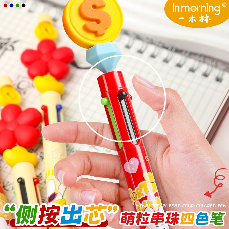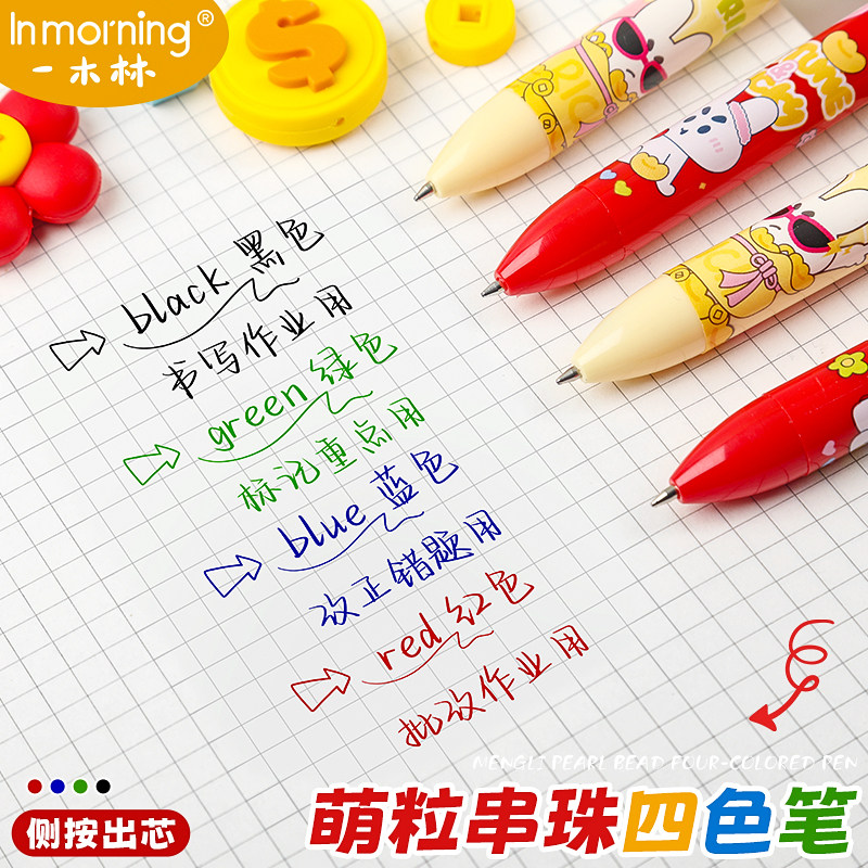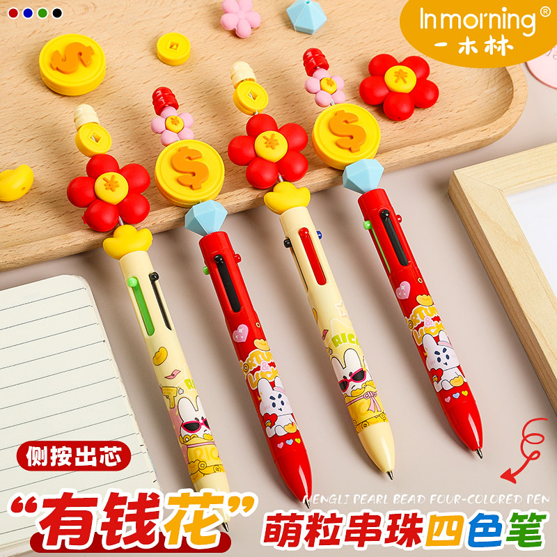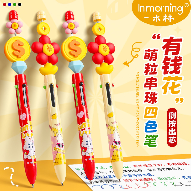 📚 一木林有钱花四色笔按动中性笔多功能模块笔高颜值多色四色记忆学生笔记专用彩色水笔标记记号笔手账笔签字笔