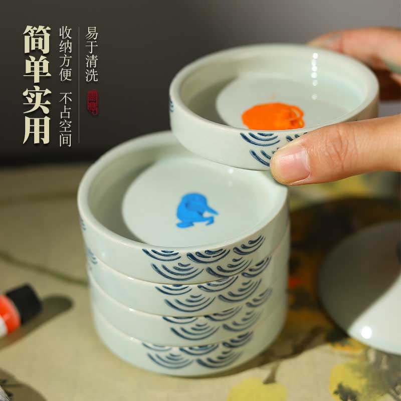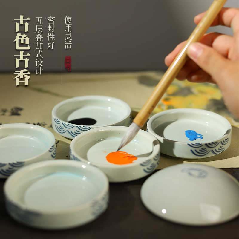 📚 极速墨尘五层墨碟墨蝶陶瓷调墨盘国画调色碟N颜料盘碟子多层水彩