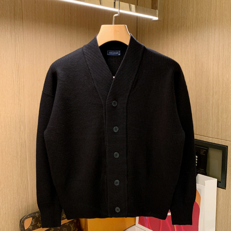 📚 老钱风男装秋冬新款男士时尚开衫高级白色针织上衣休闲毛衣外套男