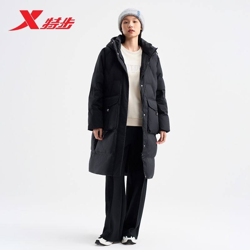 📚 特步女子中长款羽绒服冬季新款正品防风保暖外套976428640191