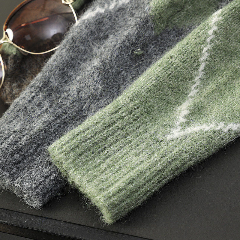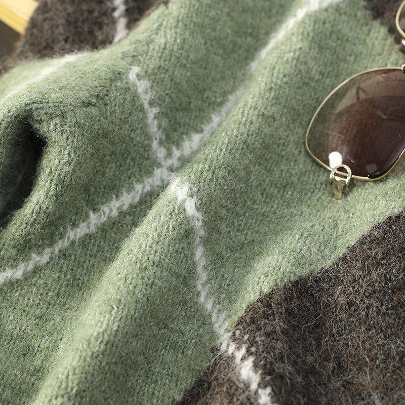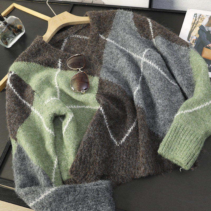 📚 2025 秋冬季新品女装慵懒风长袖V领菱形纹针织衫毛衣 5755152 054