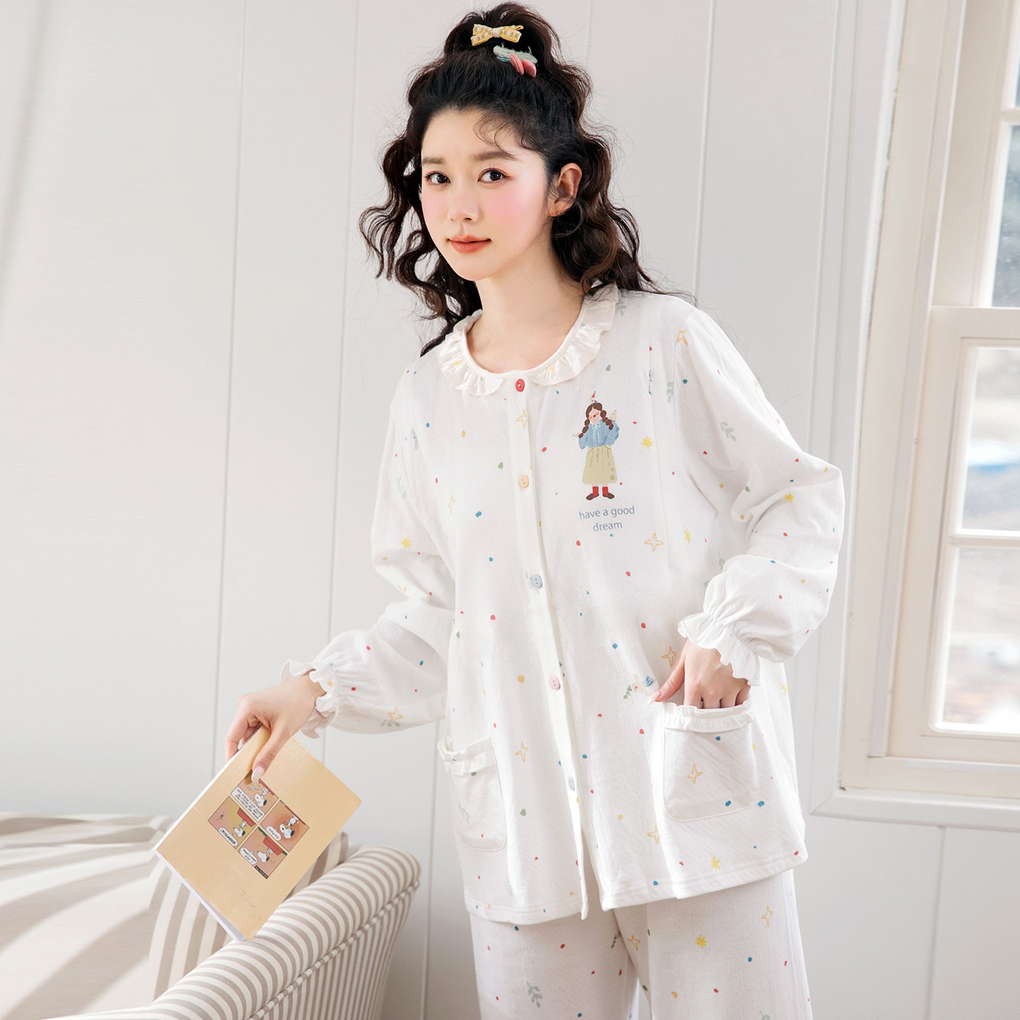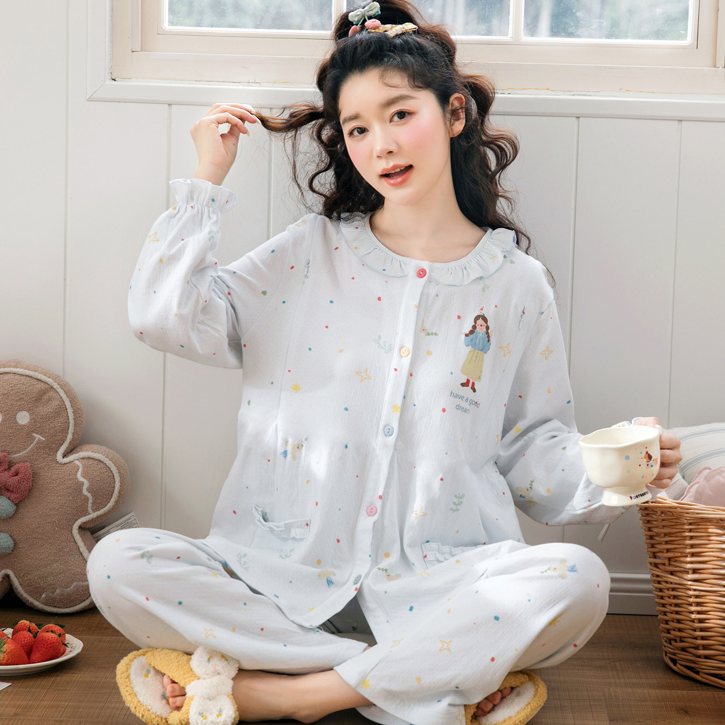 📚 家时光月子服纯棉全棉吸汗夏薄款产后孕妇哺乳睡衣四季产妇家居服