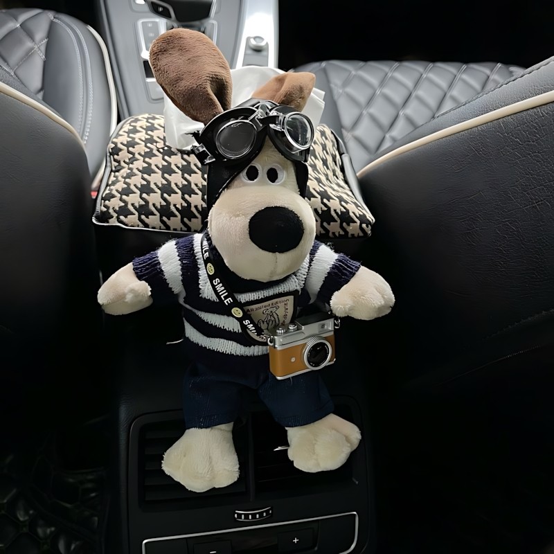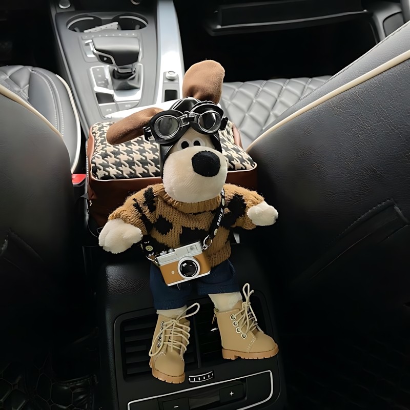 📚 车载纸巾盒可爱掌门狗公仔汽车扶手箱多功能绑带高级感车内纸巾包