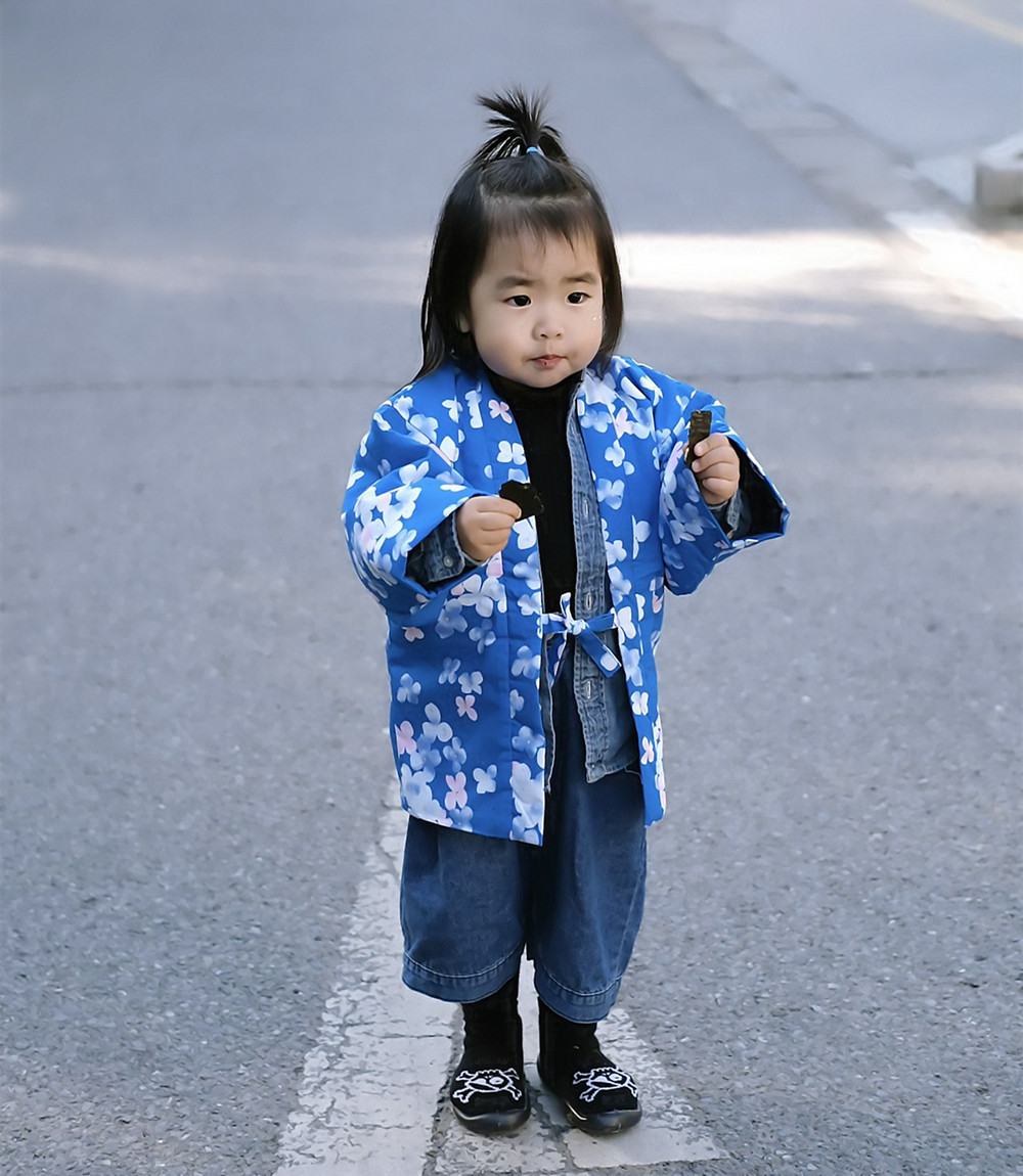 📚 外贸日系女童夹棉半缠半天棉袄羽织樱花外套和风宝宝童装