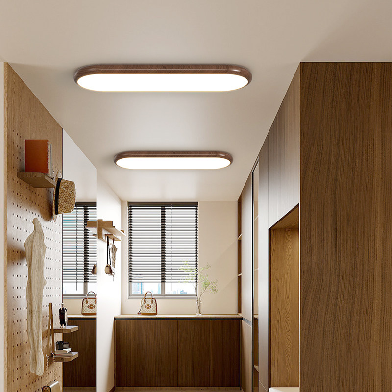 📚 箭牌胡桃木色长条超薄吸顶灯简约现代走廊过道led灯玄关衣帽间灯