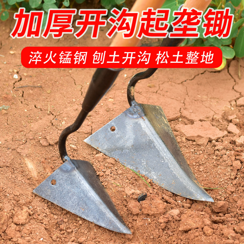 📚 农用锄头锰钢加厚开沟起垄神器三角锄家用种菜松土犁头挖沟小尖锄