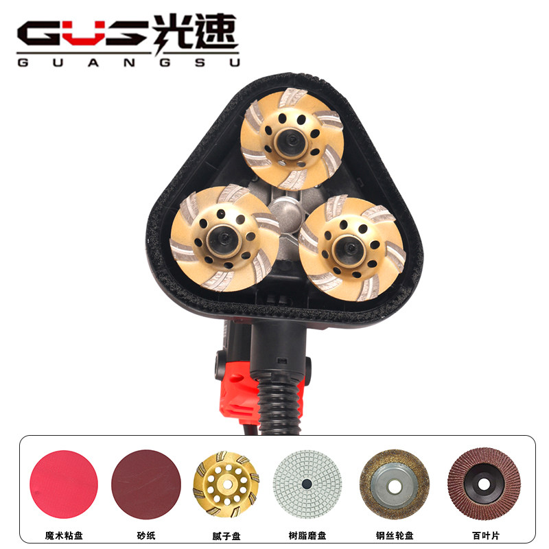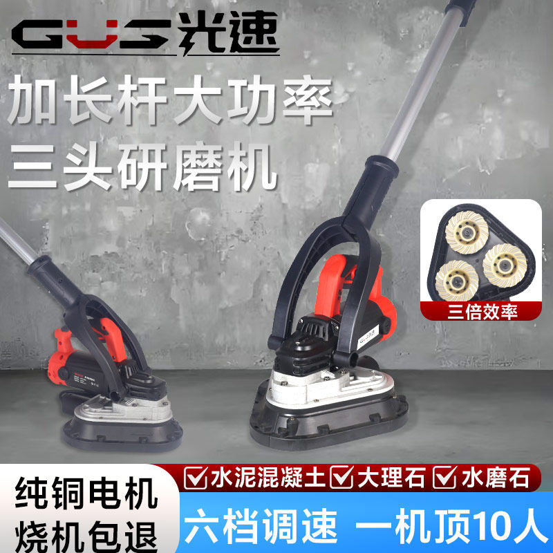 📚 光速手持三头无尘打磨机地坪研磨机磨边混凝土水泥地面翻新环氧