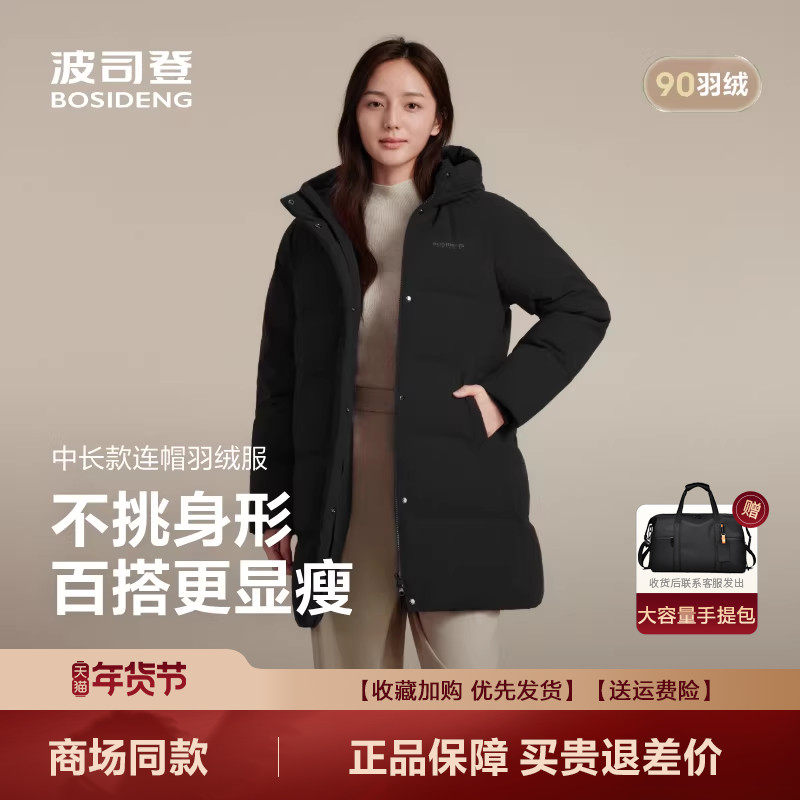 📚 波司登2025新款女士羽绒服中长款连帽妈妈装修身经典休闲保暖外套