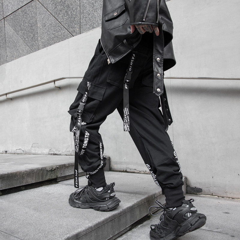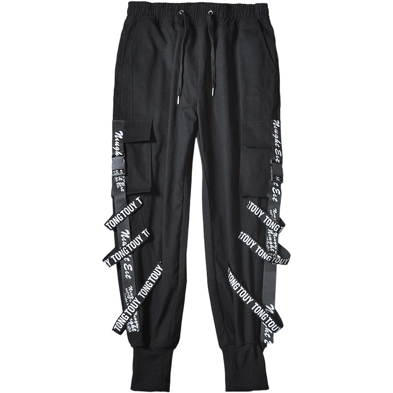 📚 高街国潮织带工装裤男潮牌余文乐哈伦裤束脚休闲裤 ins超火的裤子