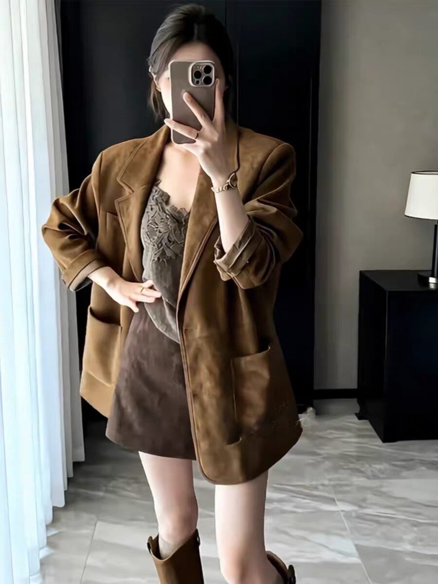 👗今日入手的心头好,一款令人难以抗拒的麂皮西装外套女!2025秋冬新款,高级感满满,美拉德色系更是让人眼前一亮!