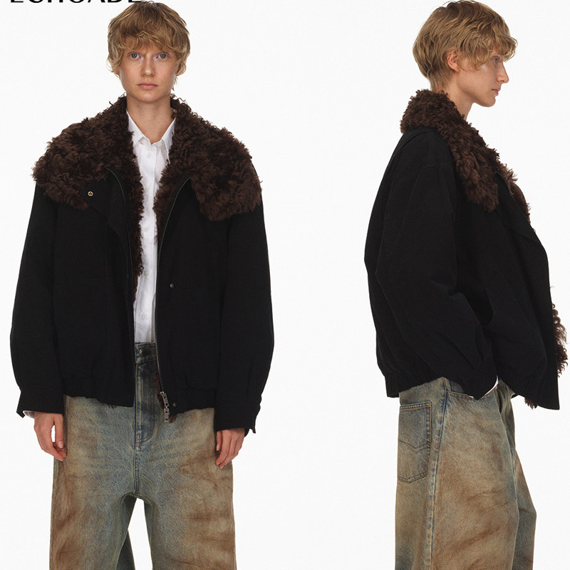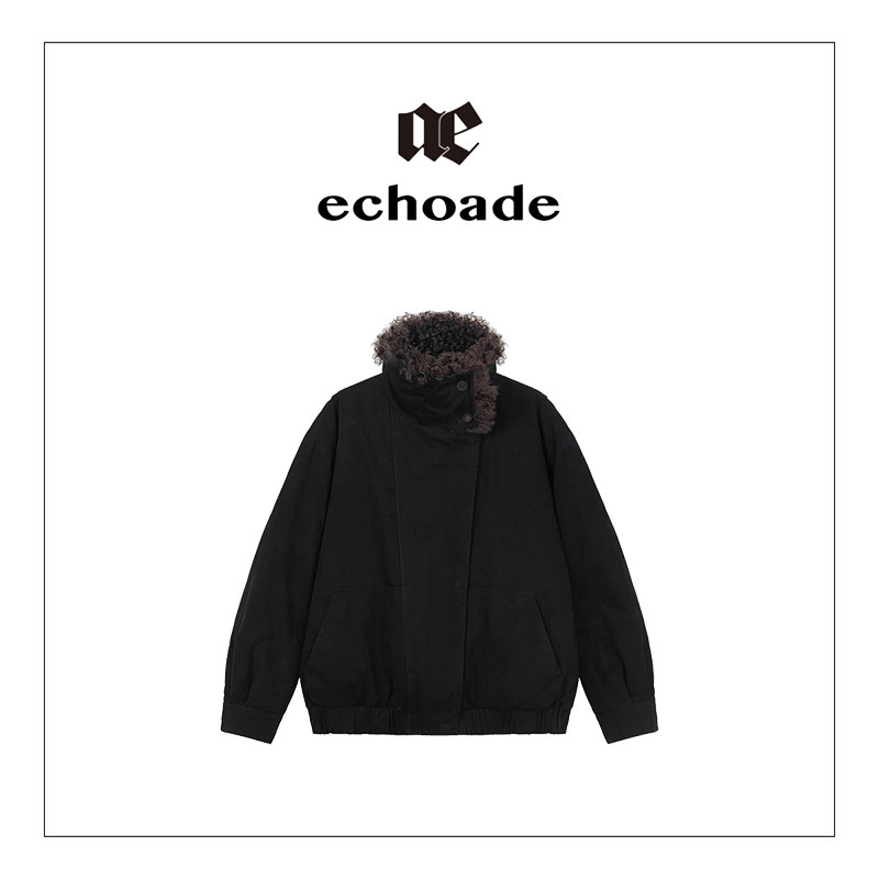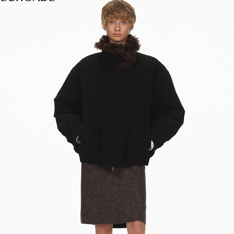 📚 ECHOADE轻盈不臃肿 鹅绒内胆拼接羊卷毛 可立领造型廓形羽绒服