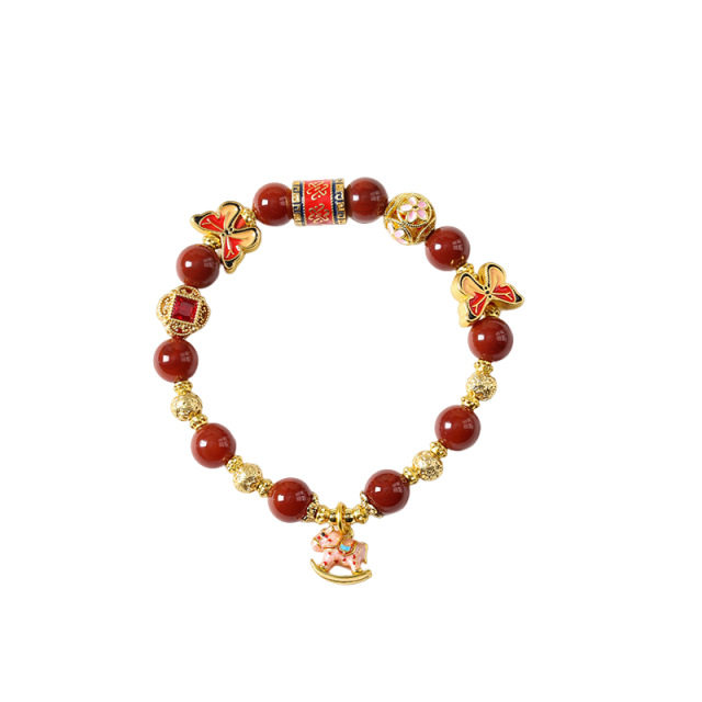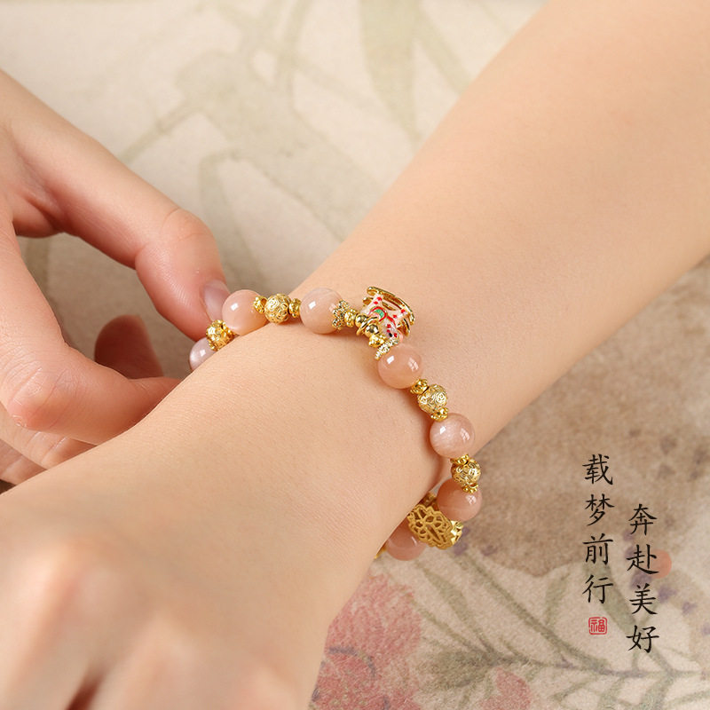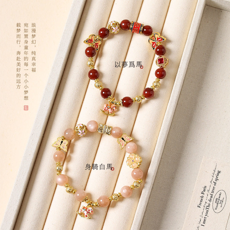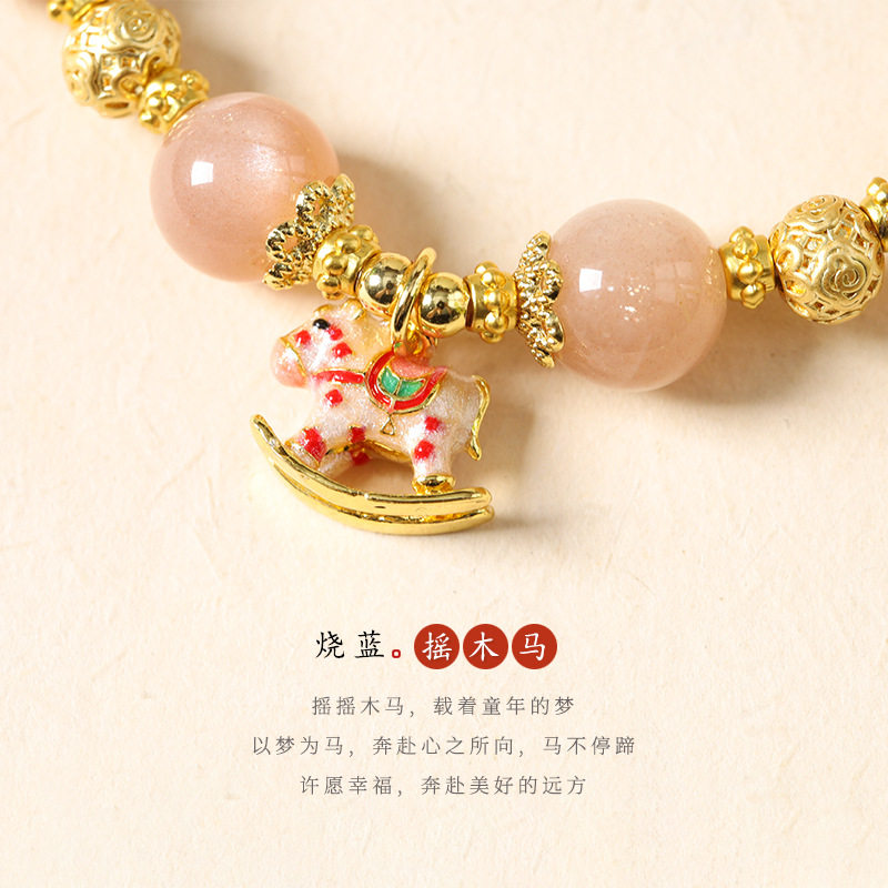 📚 小木马太阳石手链摇摇马南红玛瑙金光闪耀童真梦幻女士单圈款手串