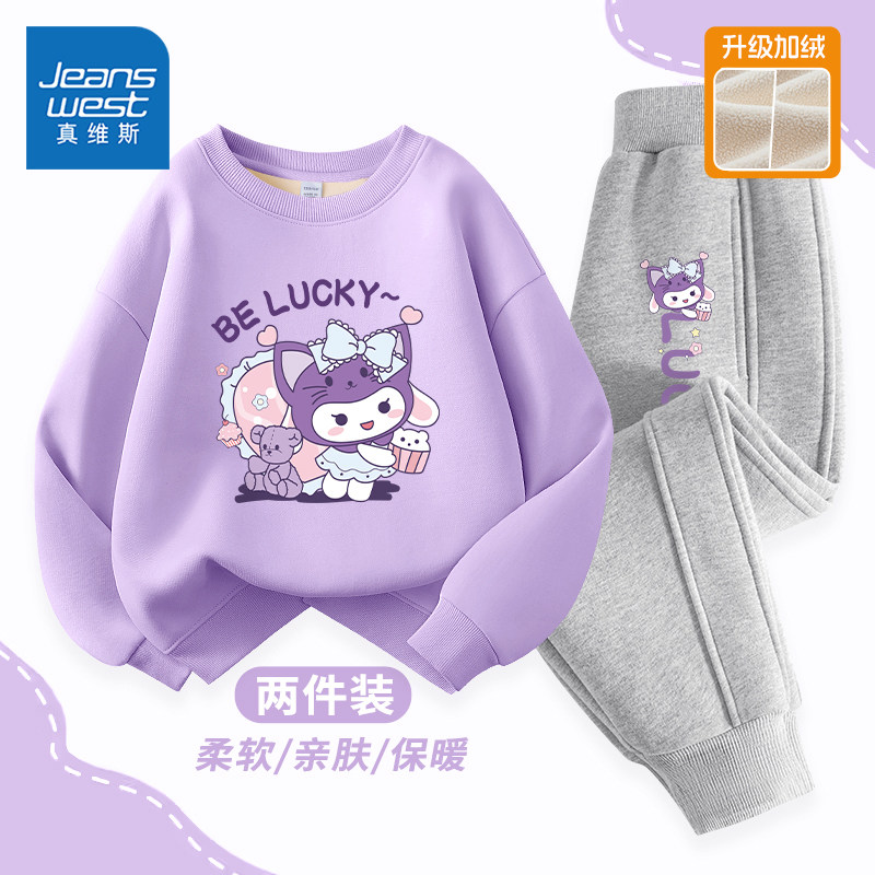 💥种草!真维斯童装女童秋冬款加绒运动卫衣大童套装,券后仅49.9💥