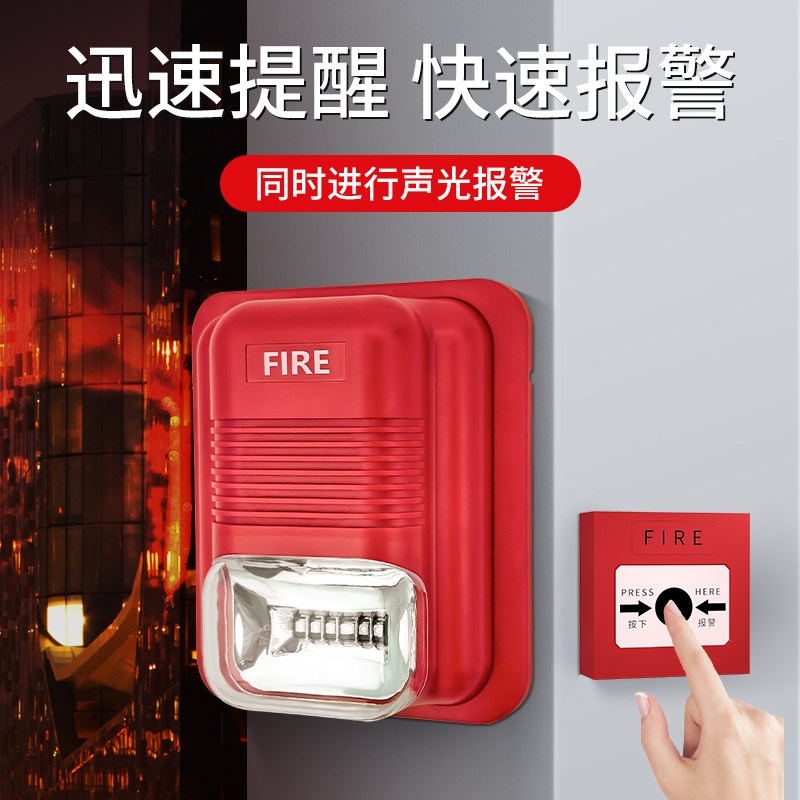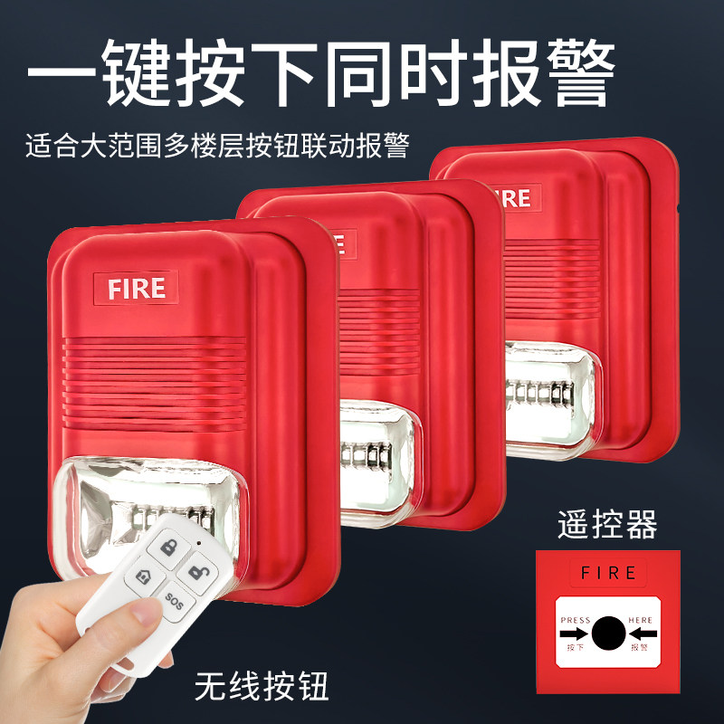 📚 一键报警器消防火灾无线联动工厂车间响铃语音声光一体式警铃装置