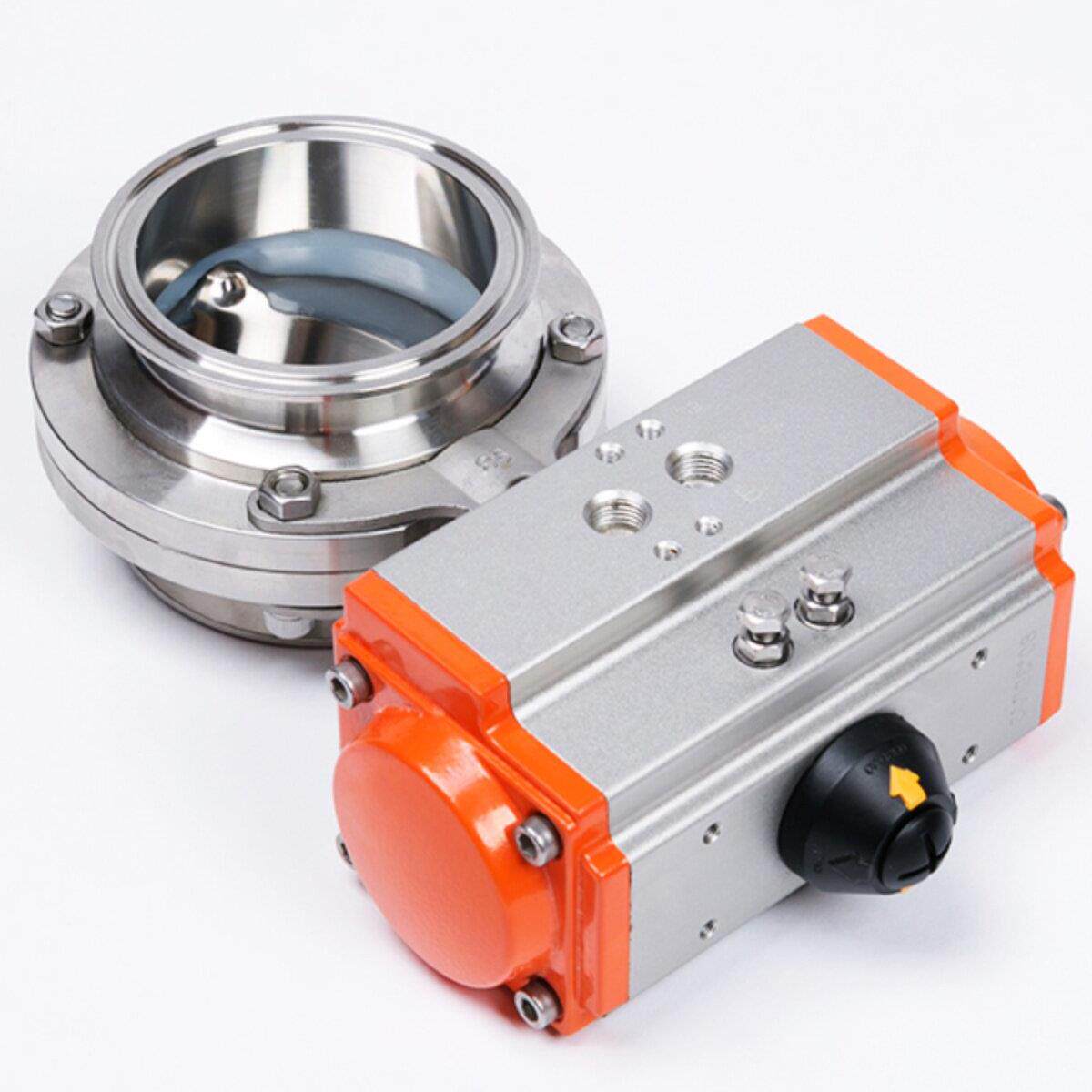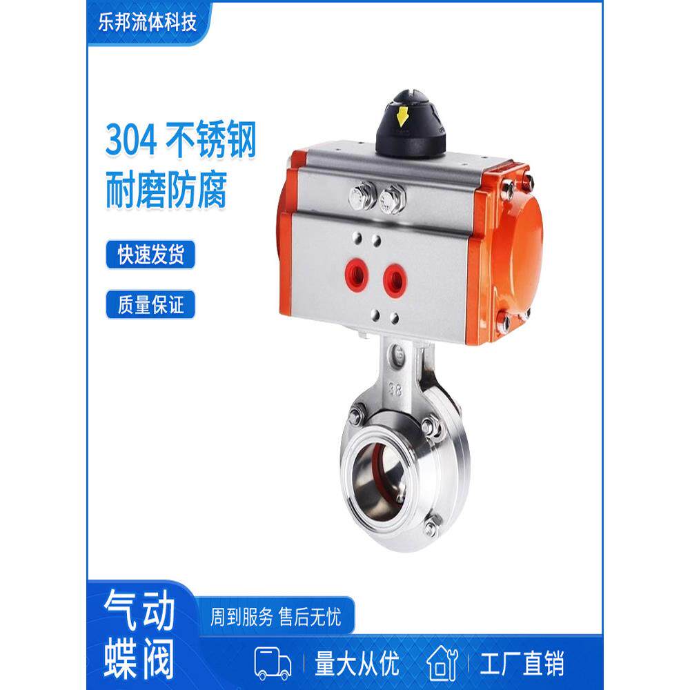 📚 乐邦304不锈钢卫生级快装快开卡箍卡盘式卧式AT气动执行器蝶阀
