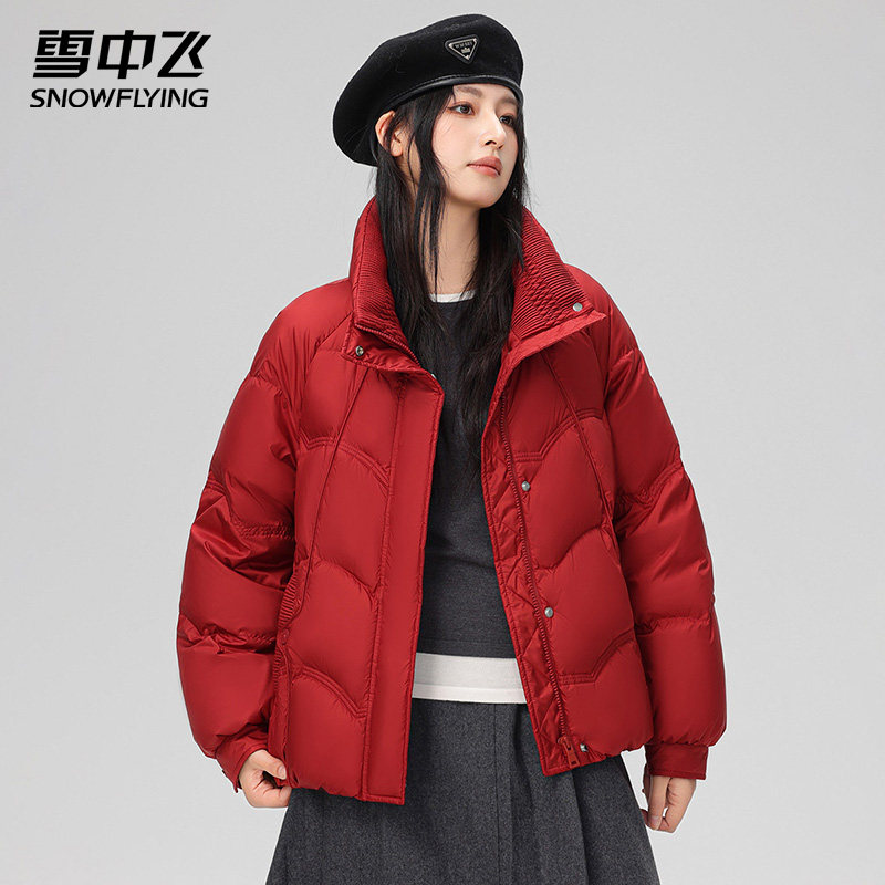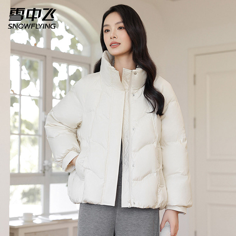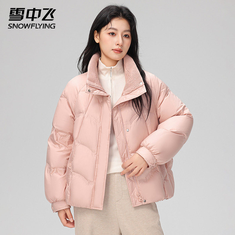 📚 雪中短款羽绒服冬季小个子女新款小香风罗纹拼接保暖鸭绒女士外套