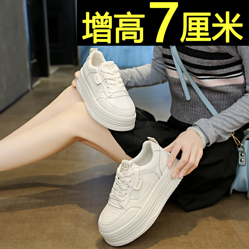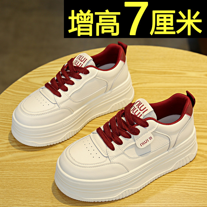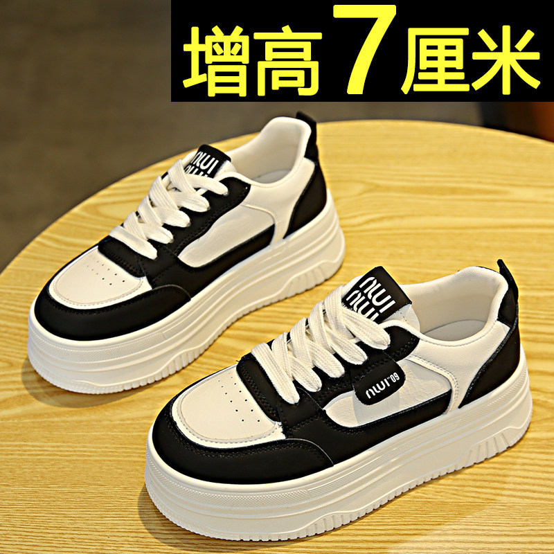 📚 厚底板鞋女2025春季新款黑白拼色运动休闲鞋内增高轻便百搭小白鞋