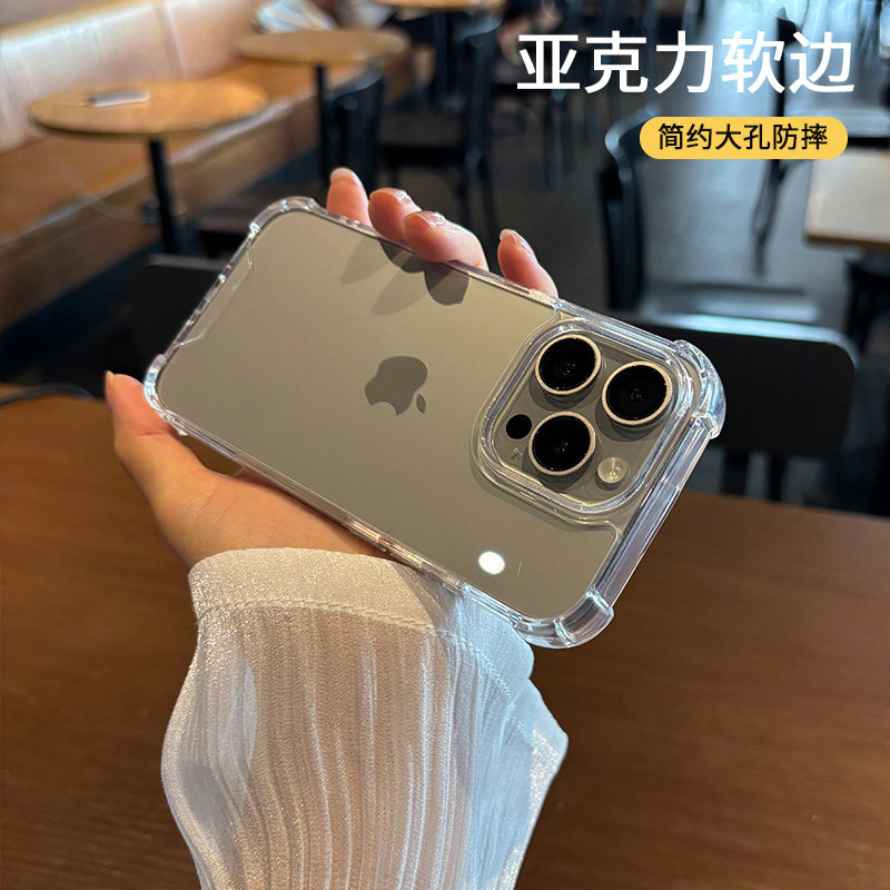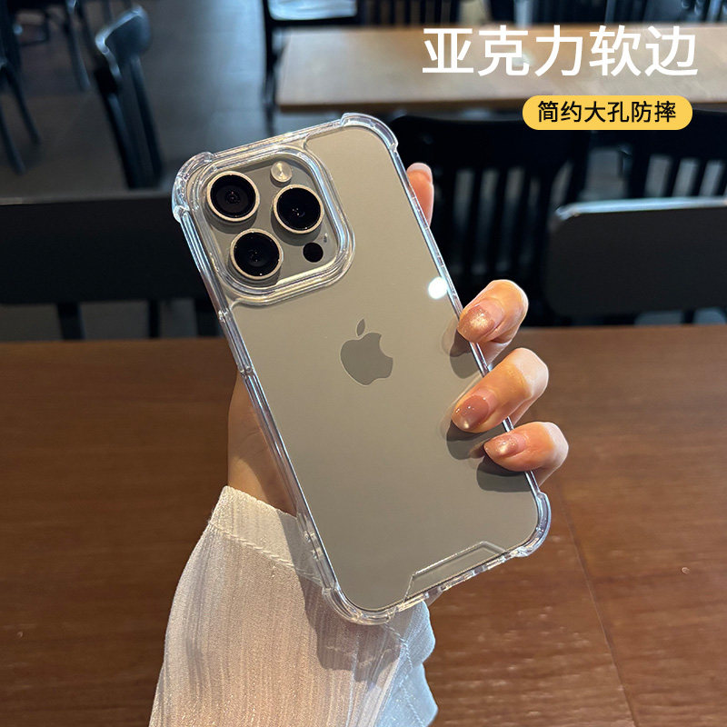 📚 适用苹果16手机壳15防摔por新款pro保护壳max亚克力iphone大孔不包镜头简约透明高级感四角气囊气垫高出屏幕p