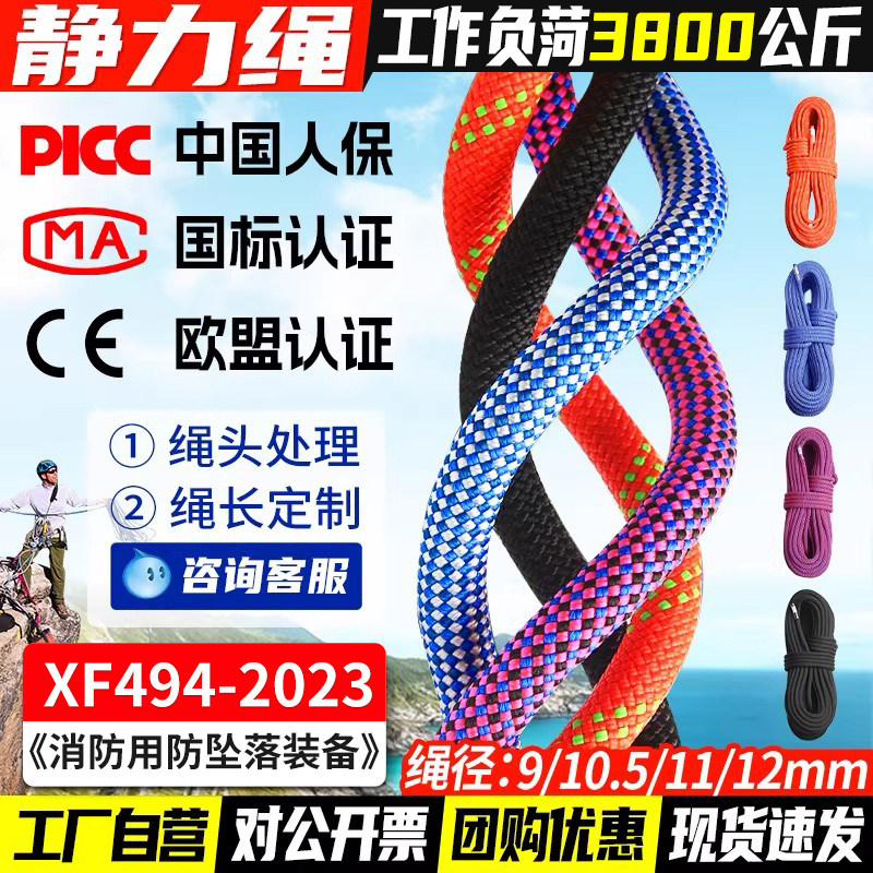📚 绳子户外静力绳高空作业安全绳国标耐磨登山攀岩绳索救援速降装备