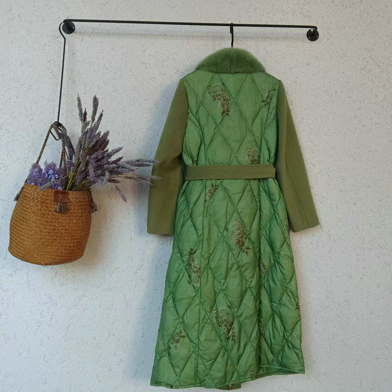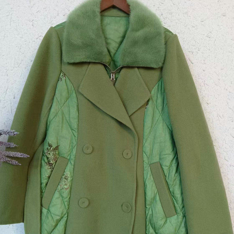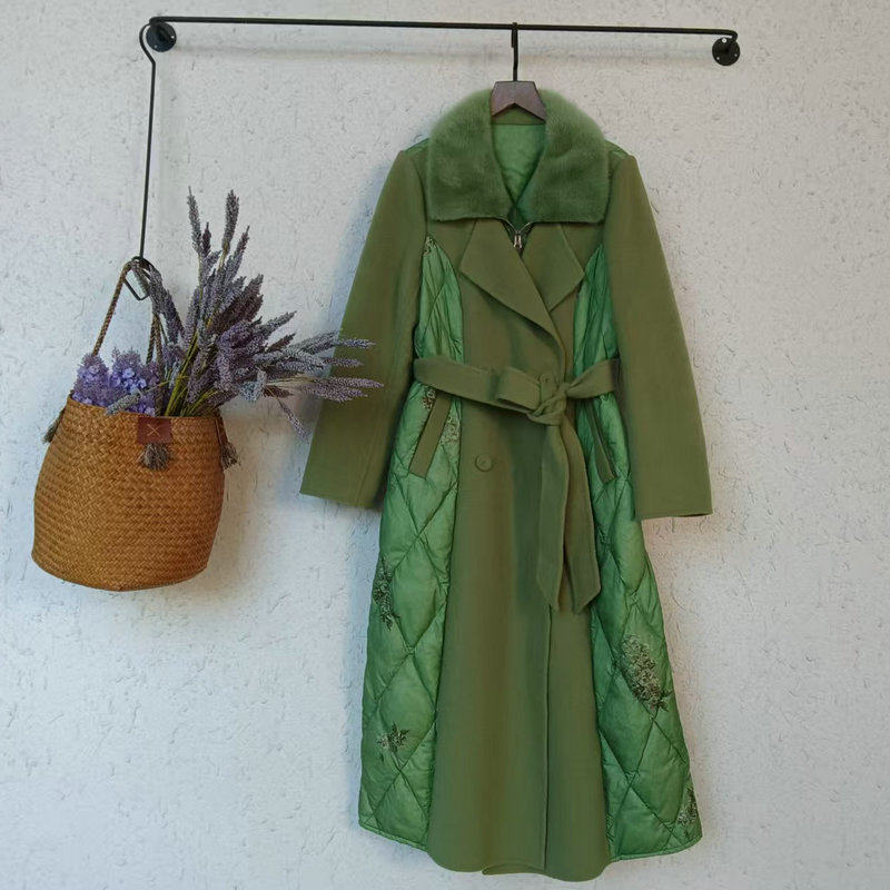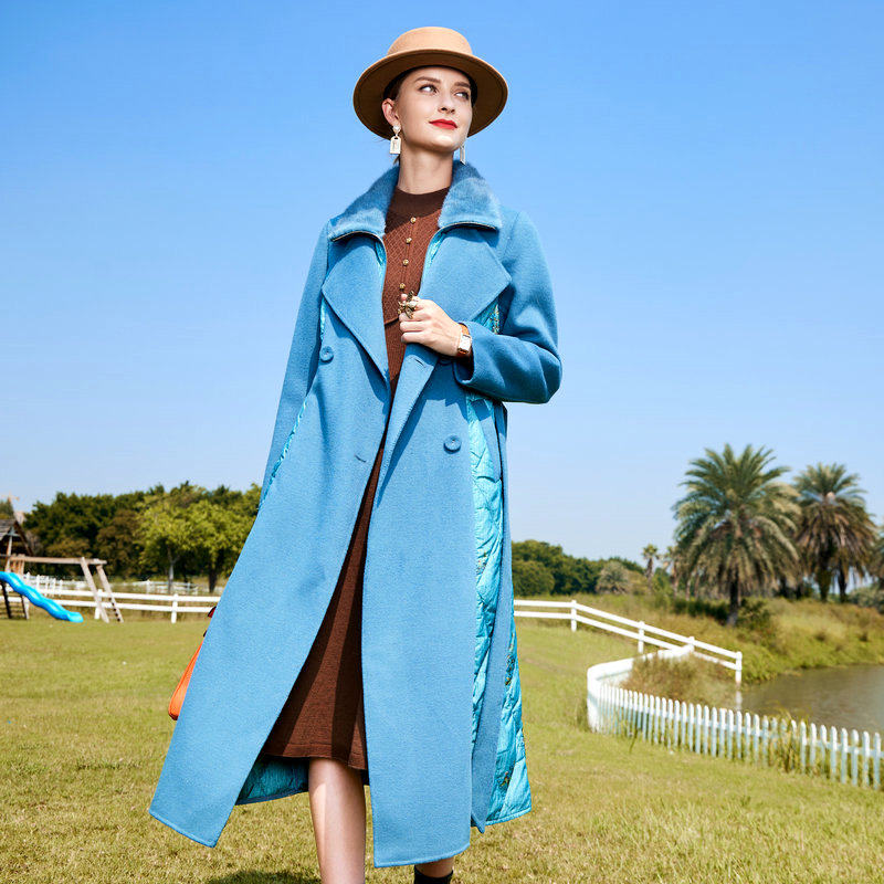 📚 双面呢拼接白鹅绒羽绒服女2022冬季新款中长款蓝色水貂毛领外套