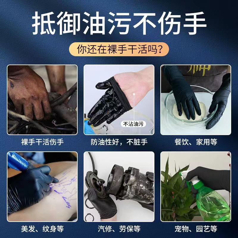 📚 英科医疗黑色丁腈手套医用一次性耐用乳胶橡胶厨房纹绣食品级专用