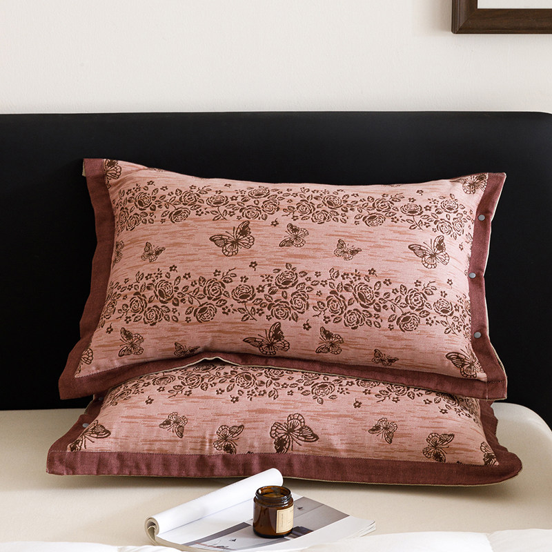 📚 2025新款全棉四层提花纱布美拉德凤格枕套成人棉枕套枕一对装枕套