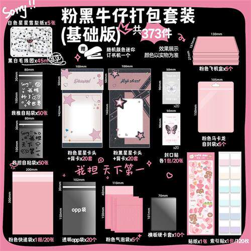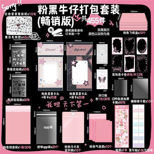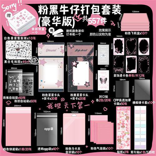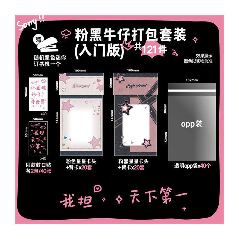 📚 小卡打包材料全套粉黑牛仔风出卡套装全套卡头卡背礼物包装随心配