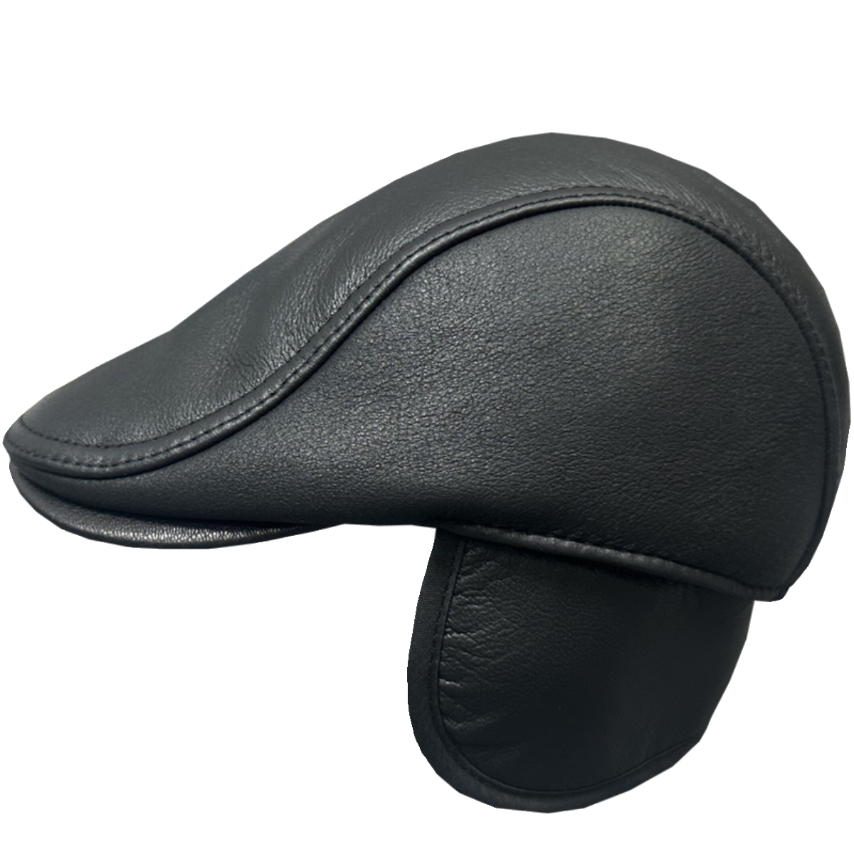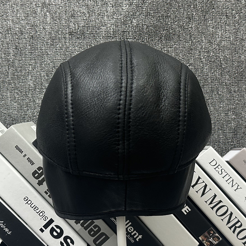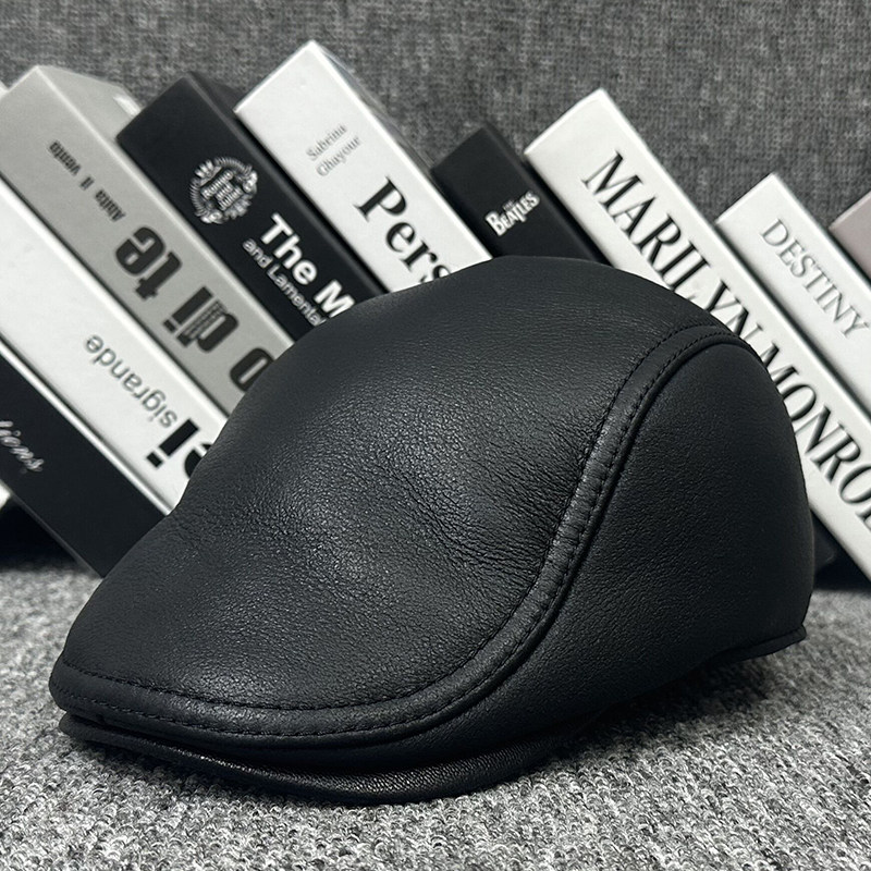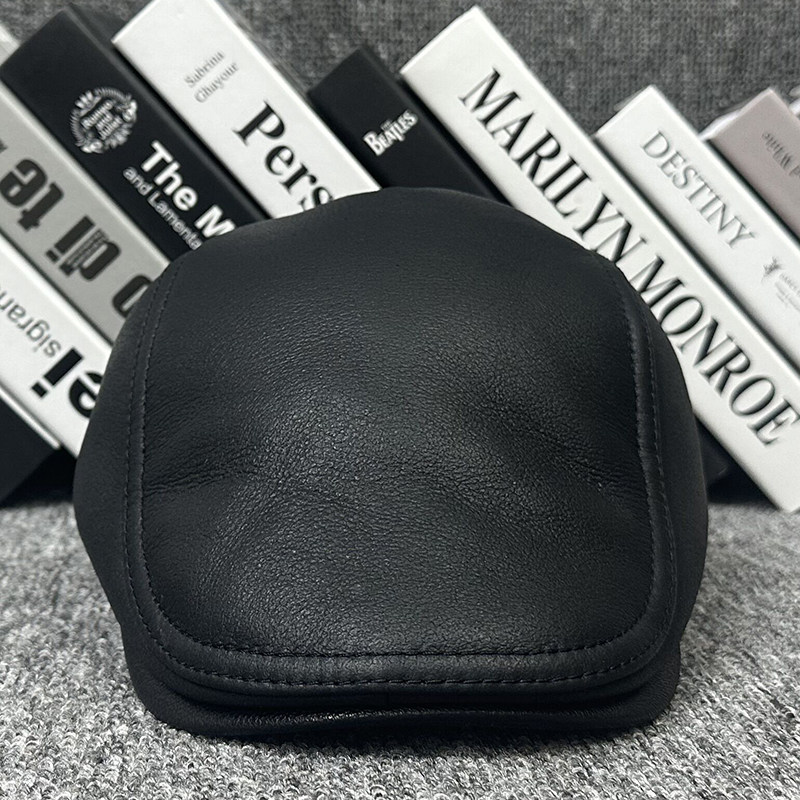 📚 高档新款羊皮毛一体冬季保暖贝雷帽中老年男士护耳鸭舌真皮皮帽子