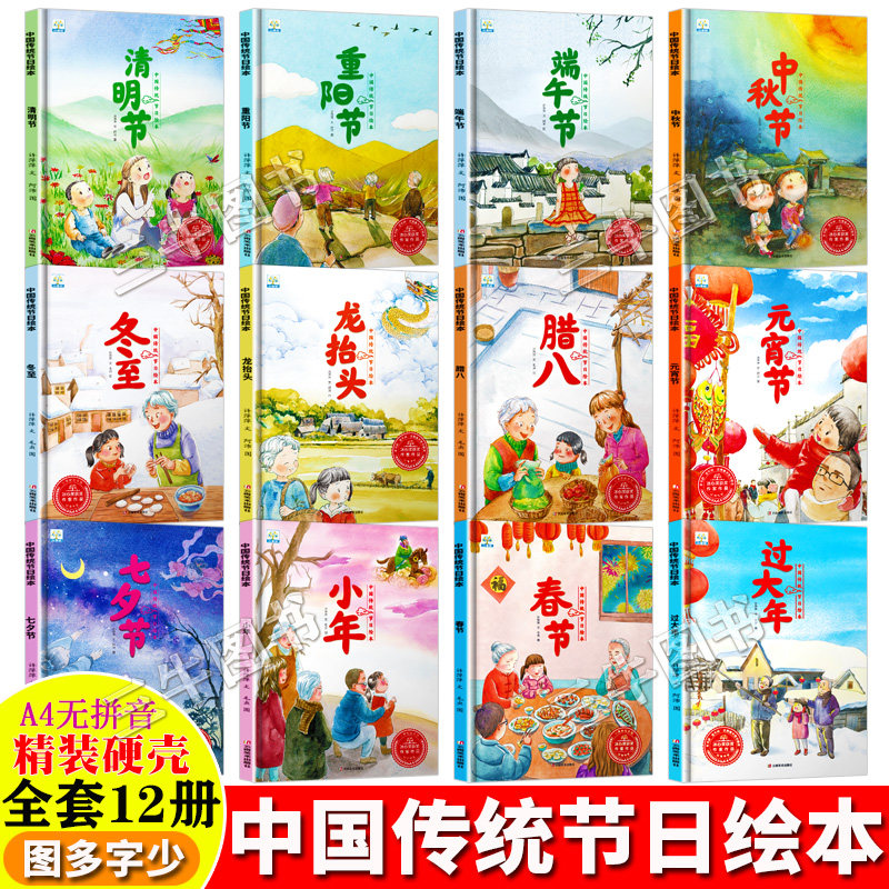 📚 中国传统民俗节日故事绘本小果树A4精装硬壳绘本幼儿园阅读儿童绘本3到6岁清明节端午节中秋节重阳节春节元宵节过大年的来历和习俗