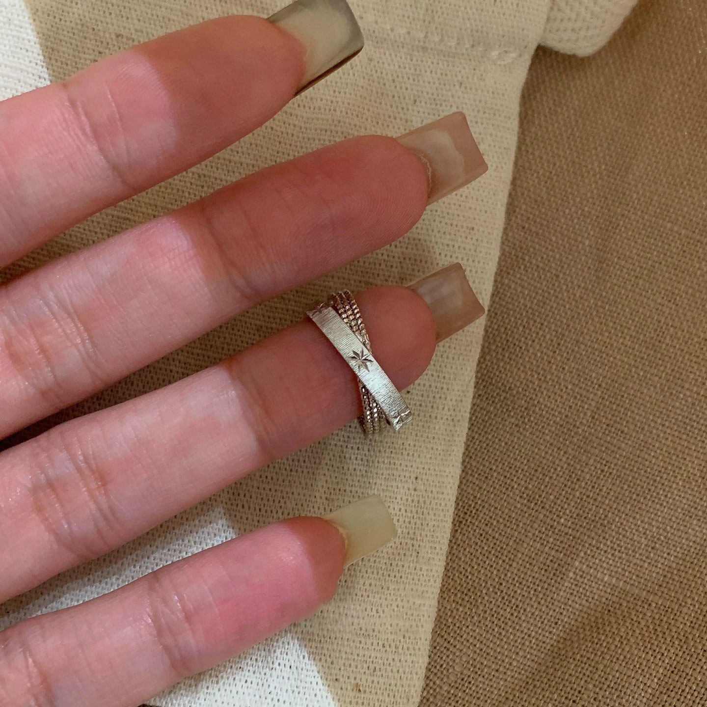 📚 水晶记小双环星芒交叉戒指女款轻奢小众高级感秋冬食指戒精致指环