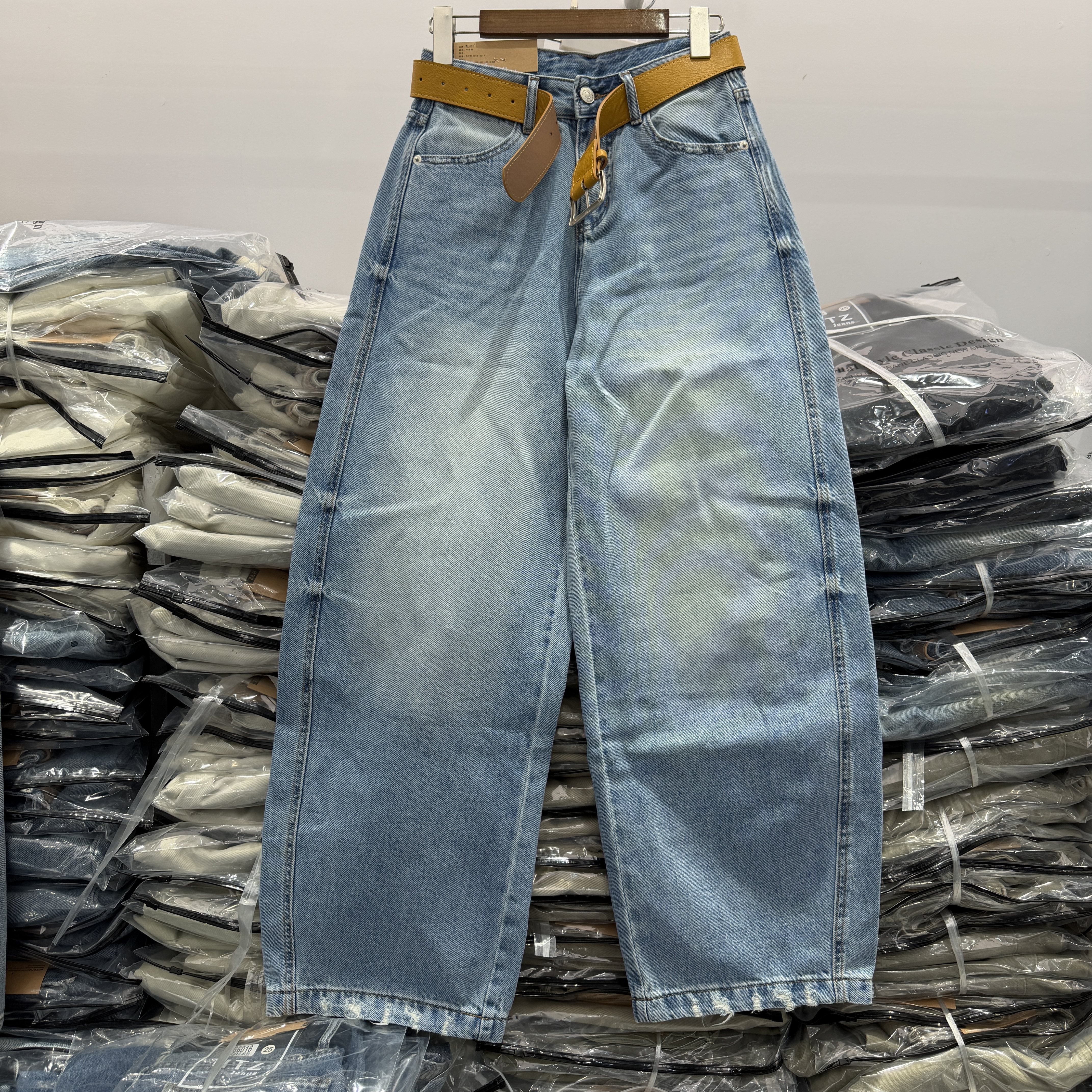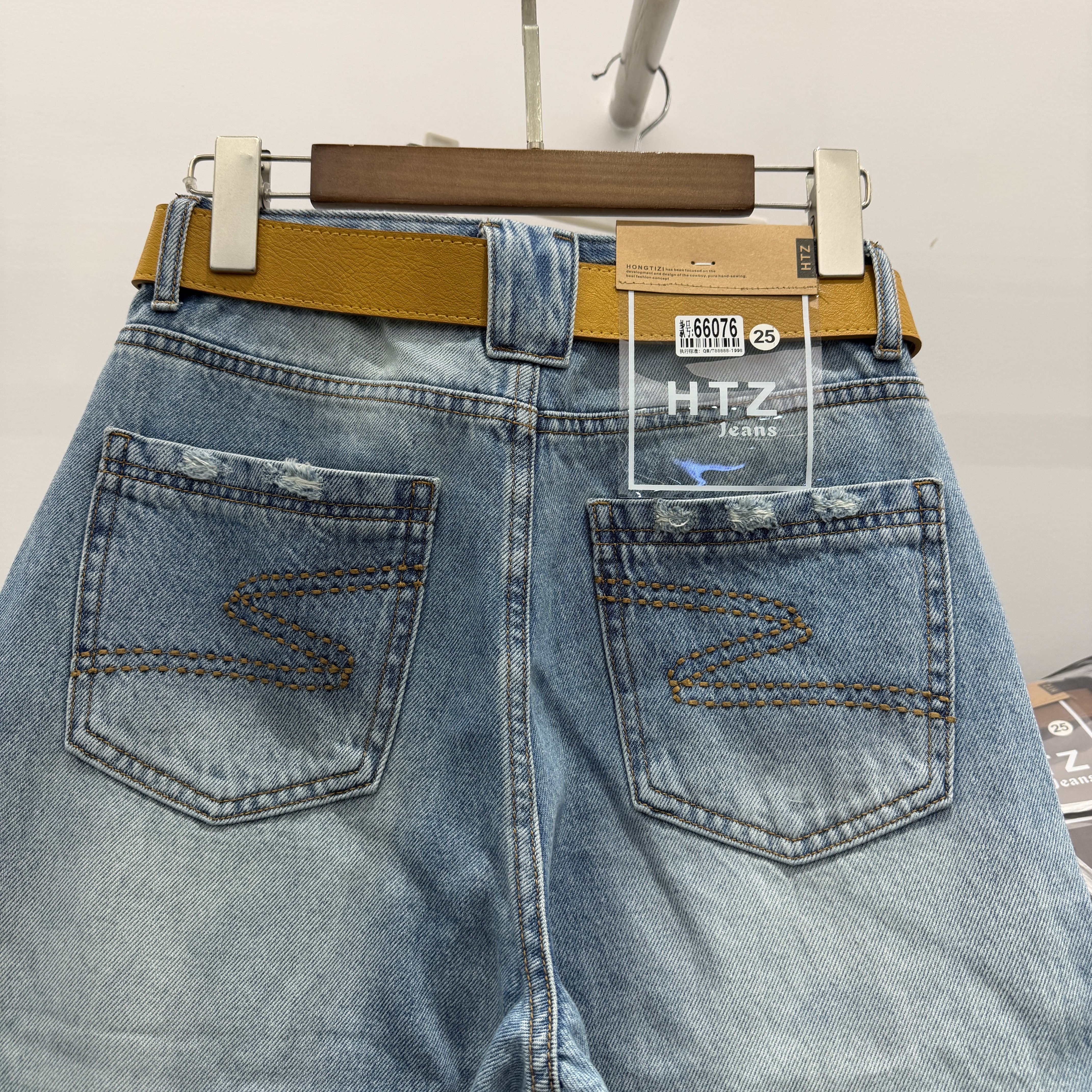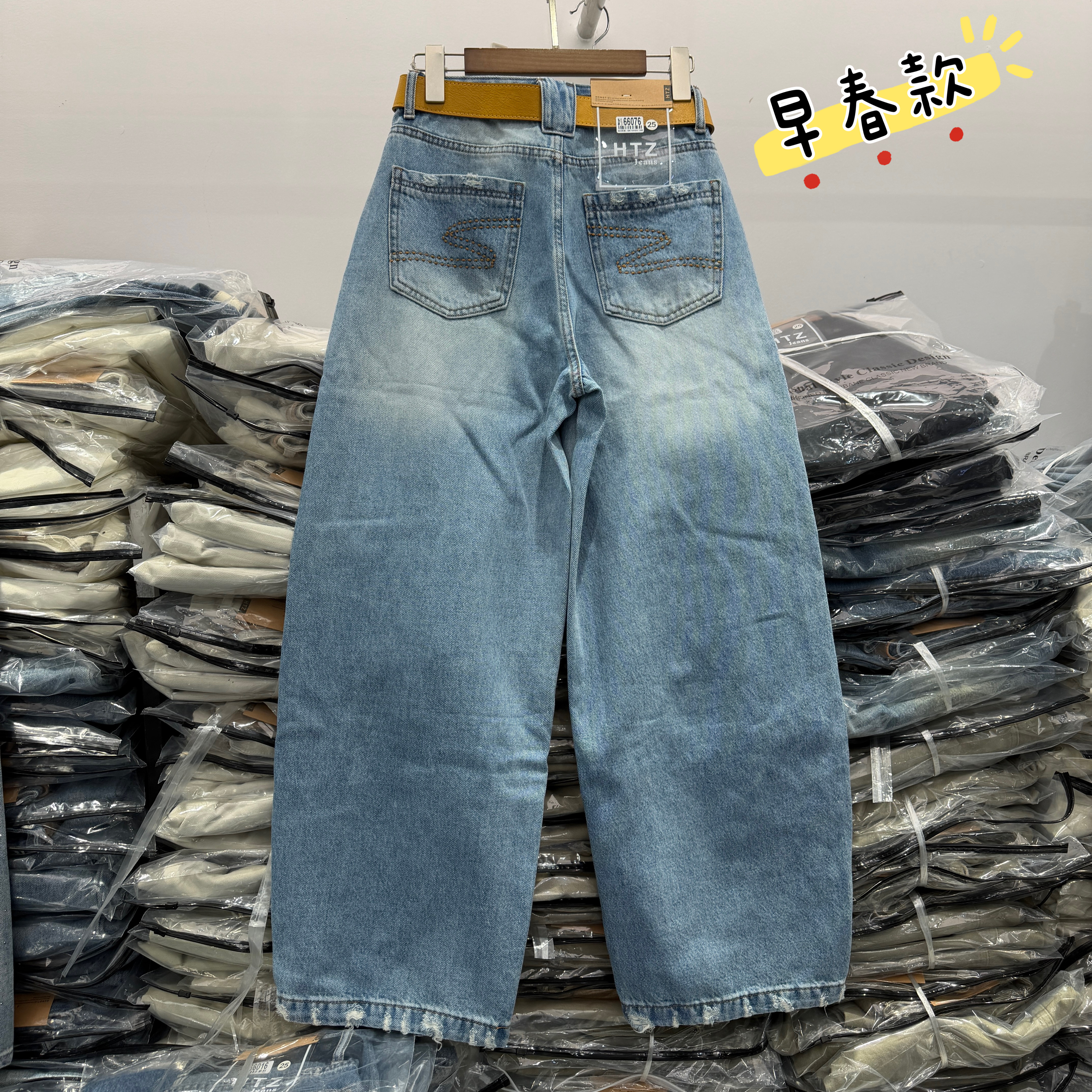 📚 Jeans红提子66076早春新品款刺绣显瘦无弹阔腿弯刀裤女牛仔裤2026