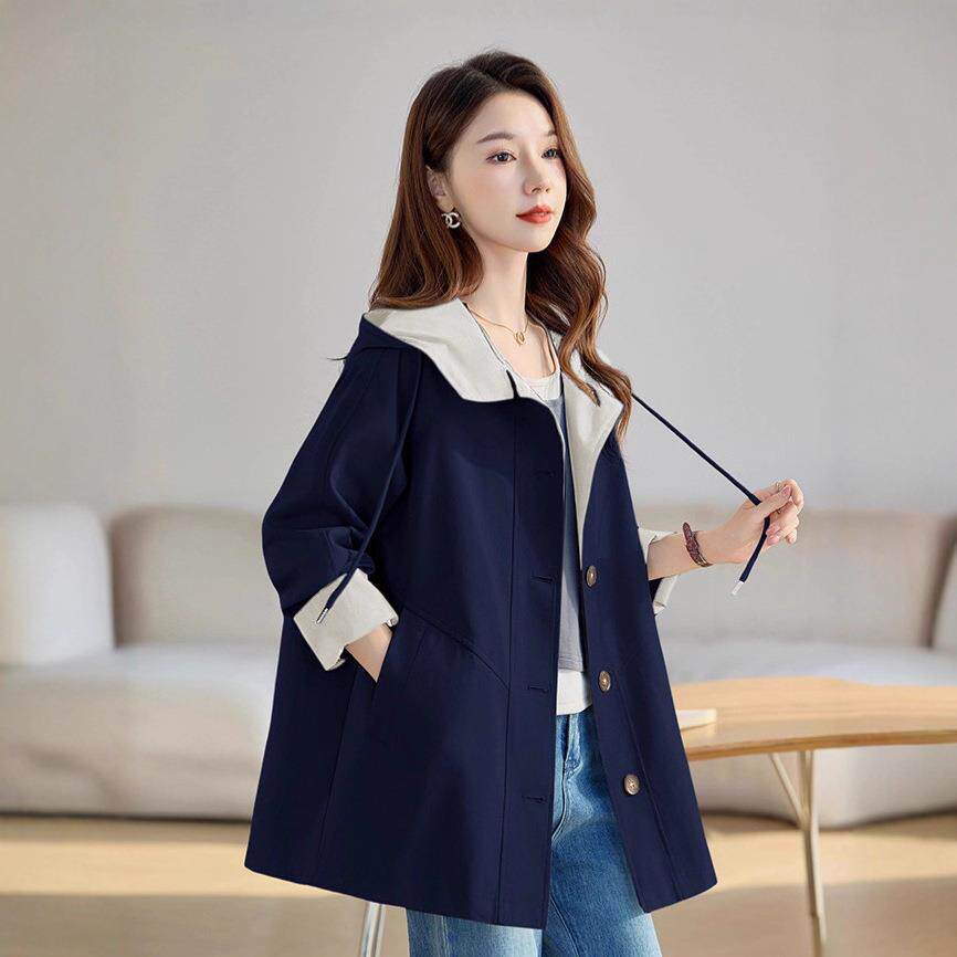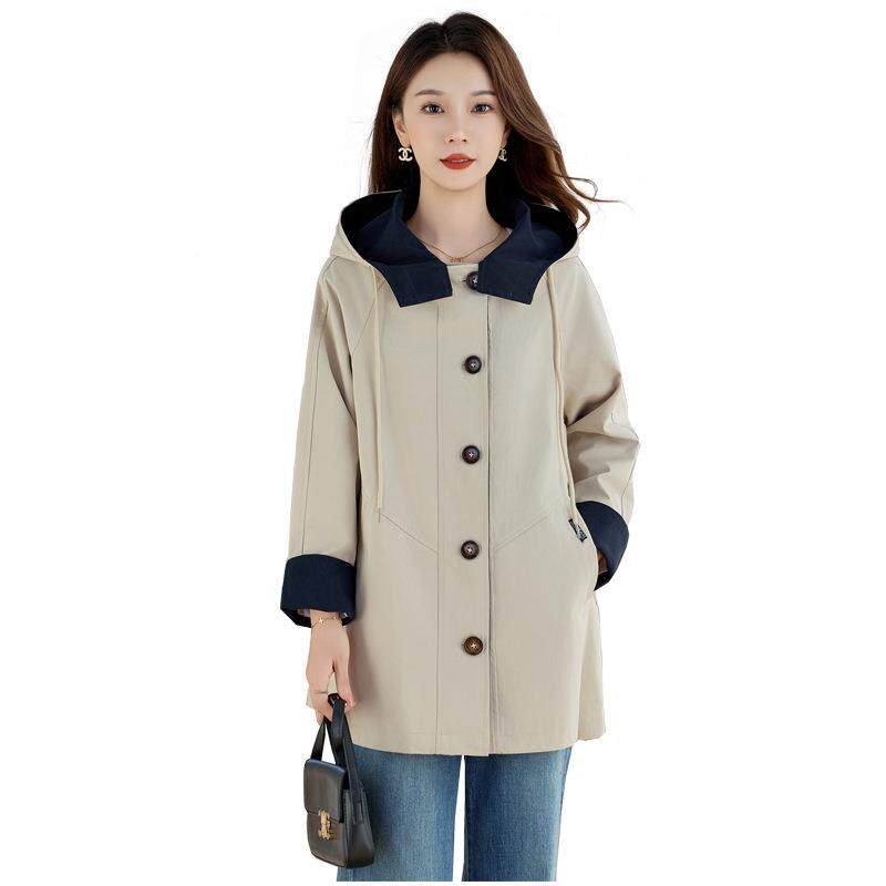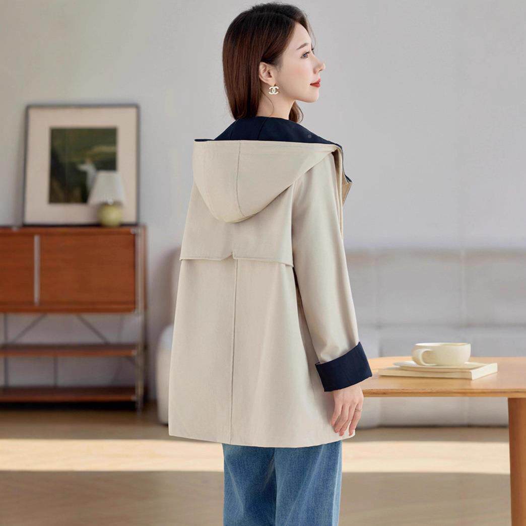 📚 秋季百新款宽松连显瘦外套长OU6908-0款撞中色休闲搭帽女式风衣