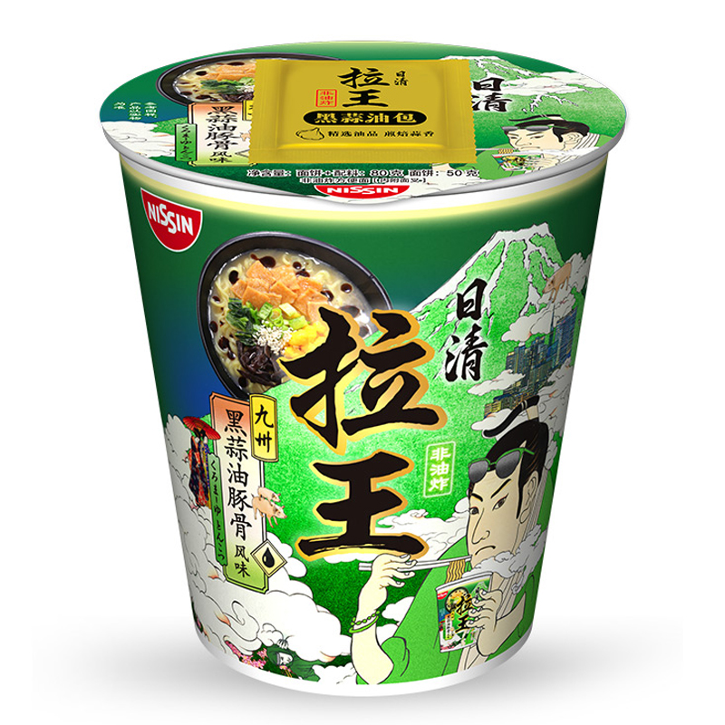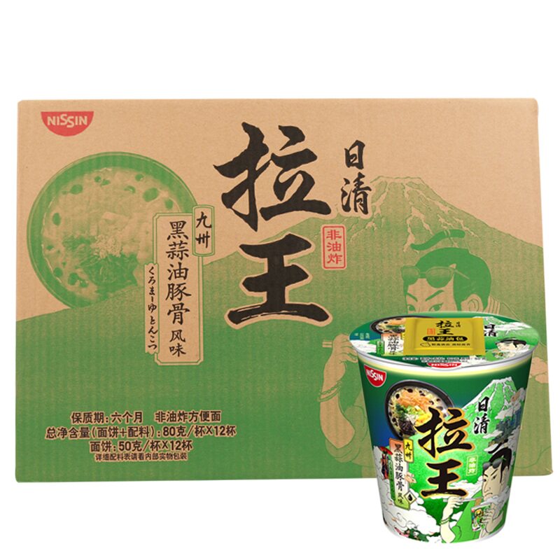 📚 日清方便面拉王九州黑蒜油豚骨味80g*12杯日清面夜宵零食面