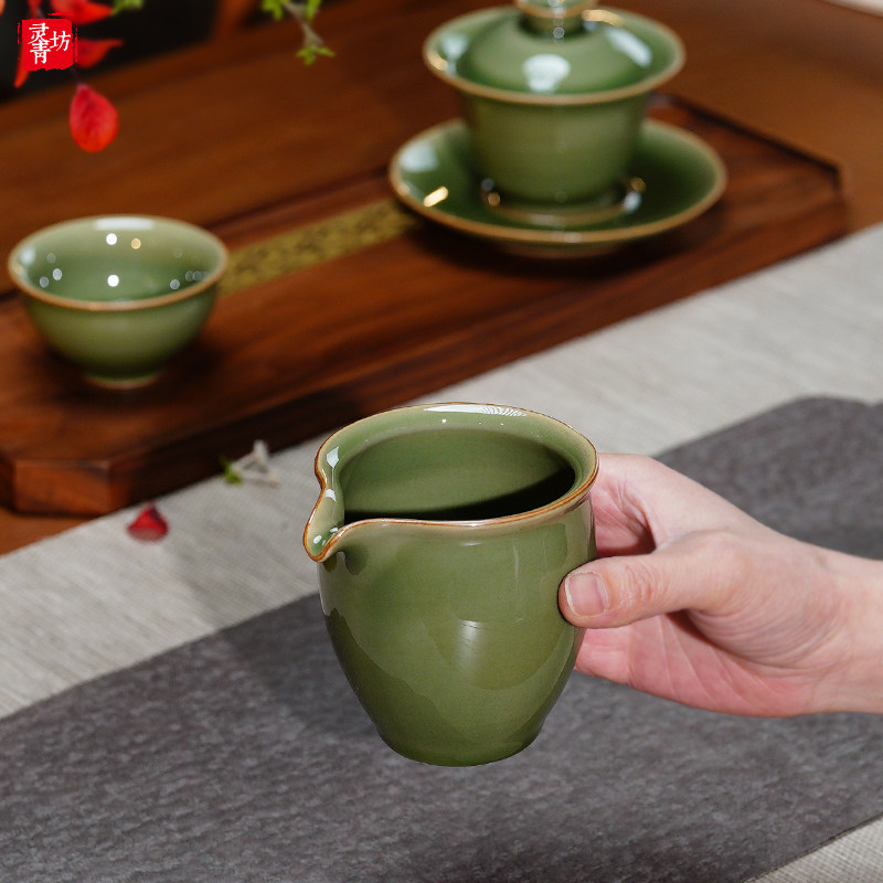 📚 青瓷公道杯陶瓷高档手工公杯单个分茶器茶海龙泉弟窑功夫茶具配件