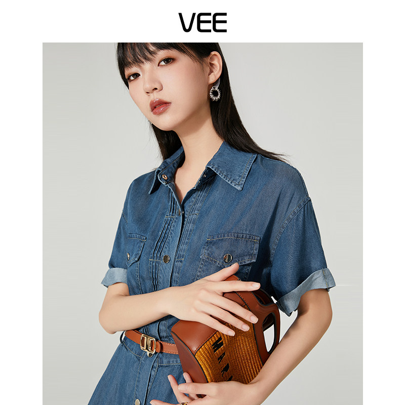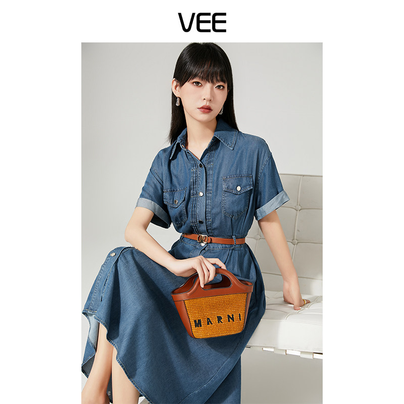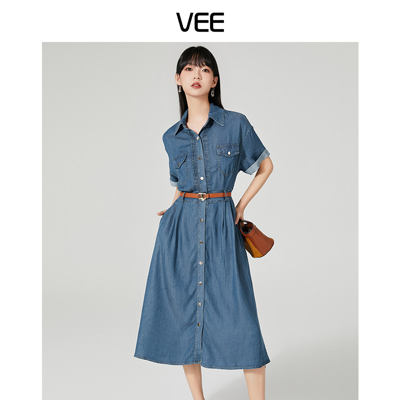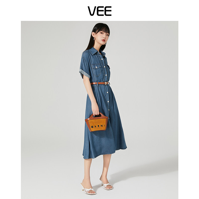 📚 VEE/唯己【向光而行】夏季新款气质时尚休闲复古收腰伞摆连衣裙