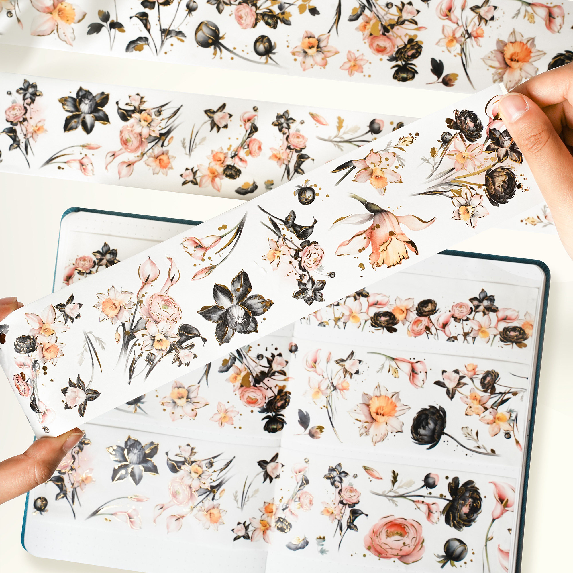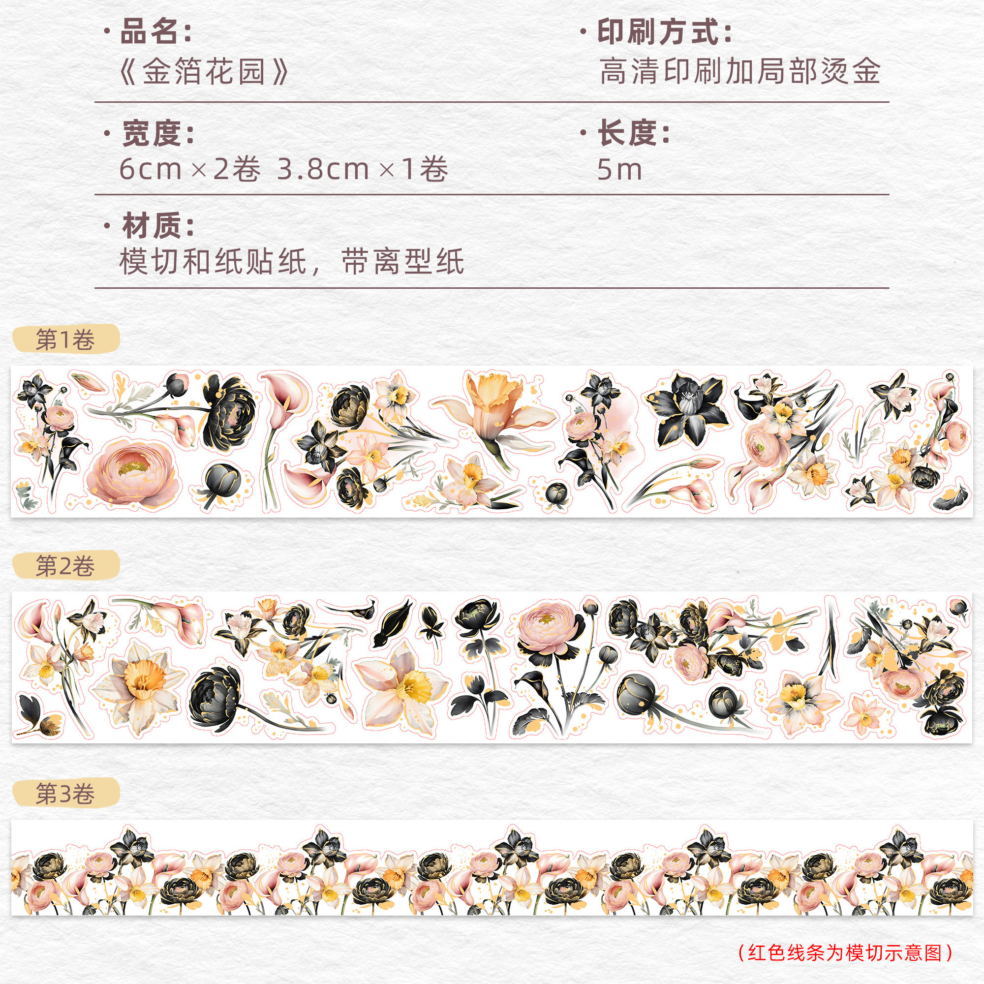 📚 WT原创胶带 金箔花园 烫金花朵模切和纸手帐胶带套装博主同款INS
