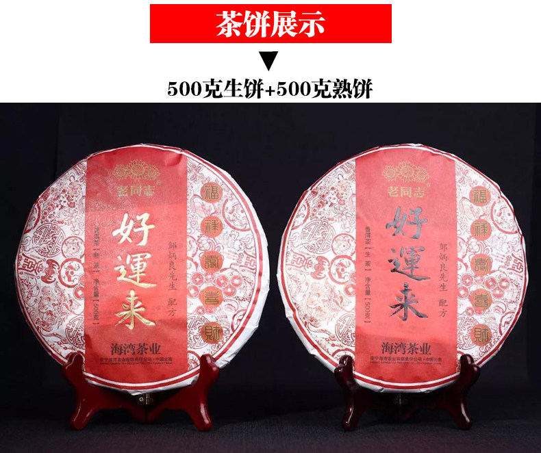 📚 2盒包邮 老同志普洱茶 2018年好运来礼盒 生饼+熟饼各500g 礼盒装